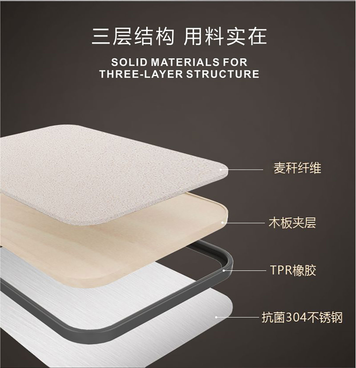 Stuff:PP/抗菌麥稈纖維/木板夾層/TPR橡膠/抗菌304不銹鋼