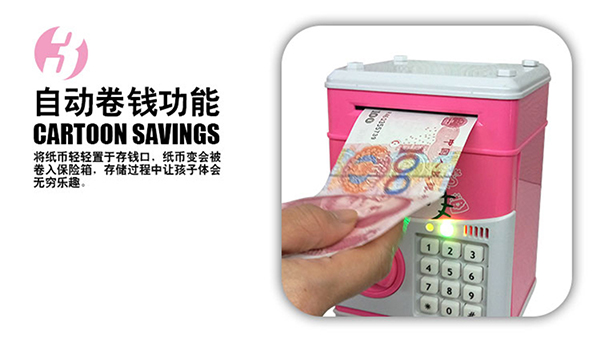 粉紅豬自動卷錢ATM密碼箱存錢罐