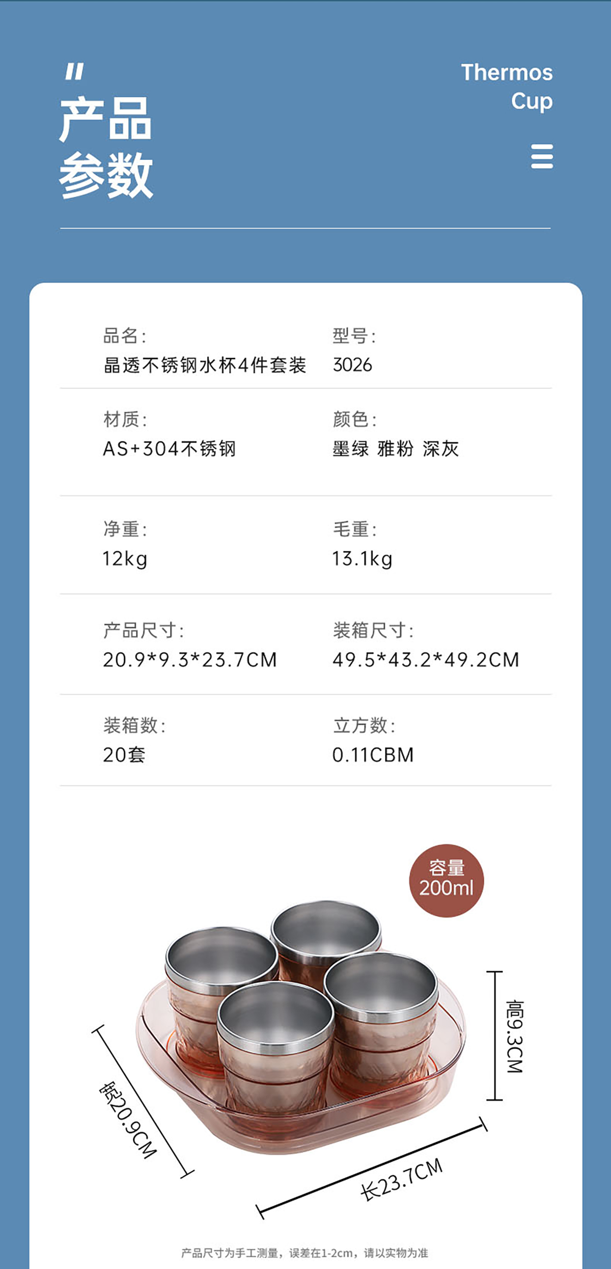 Stuff:304不銹鋼+AS+托盤PET/彩盒