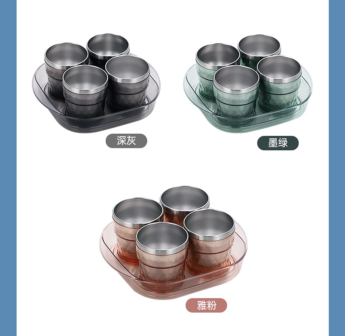 晶透304不銹鋼水杯五件套(4杯+1托盤)250mlx4