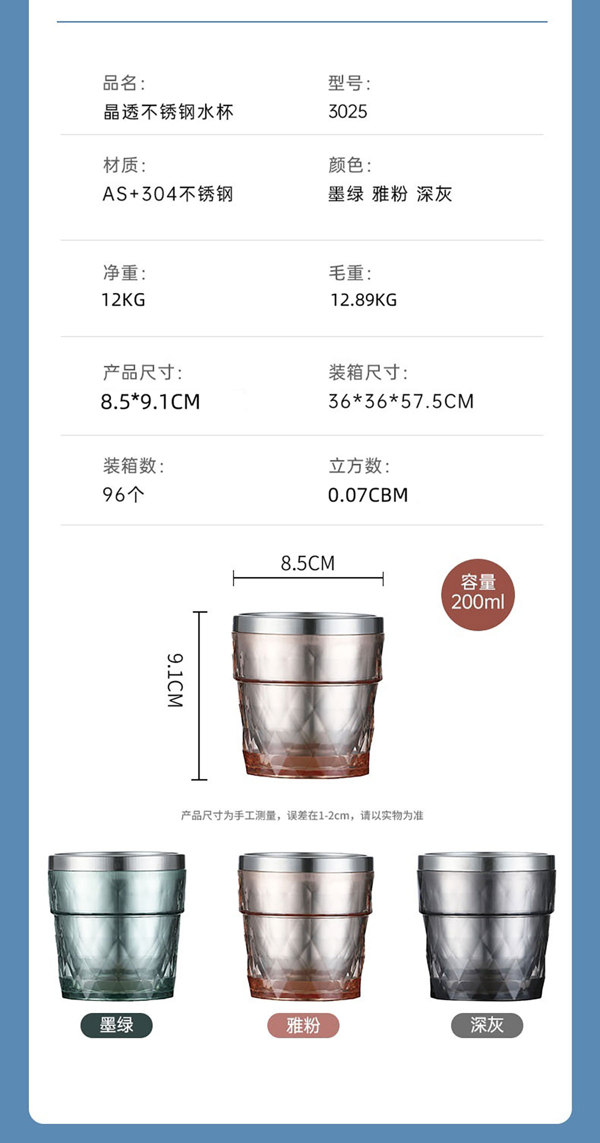Size: 209*93*237mm/單個(gè)水杯:85*91mm/200ml