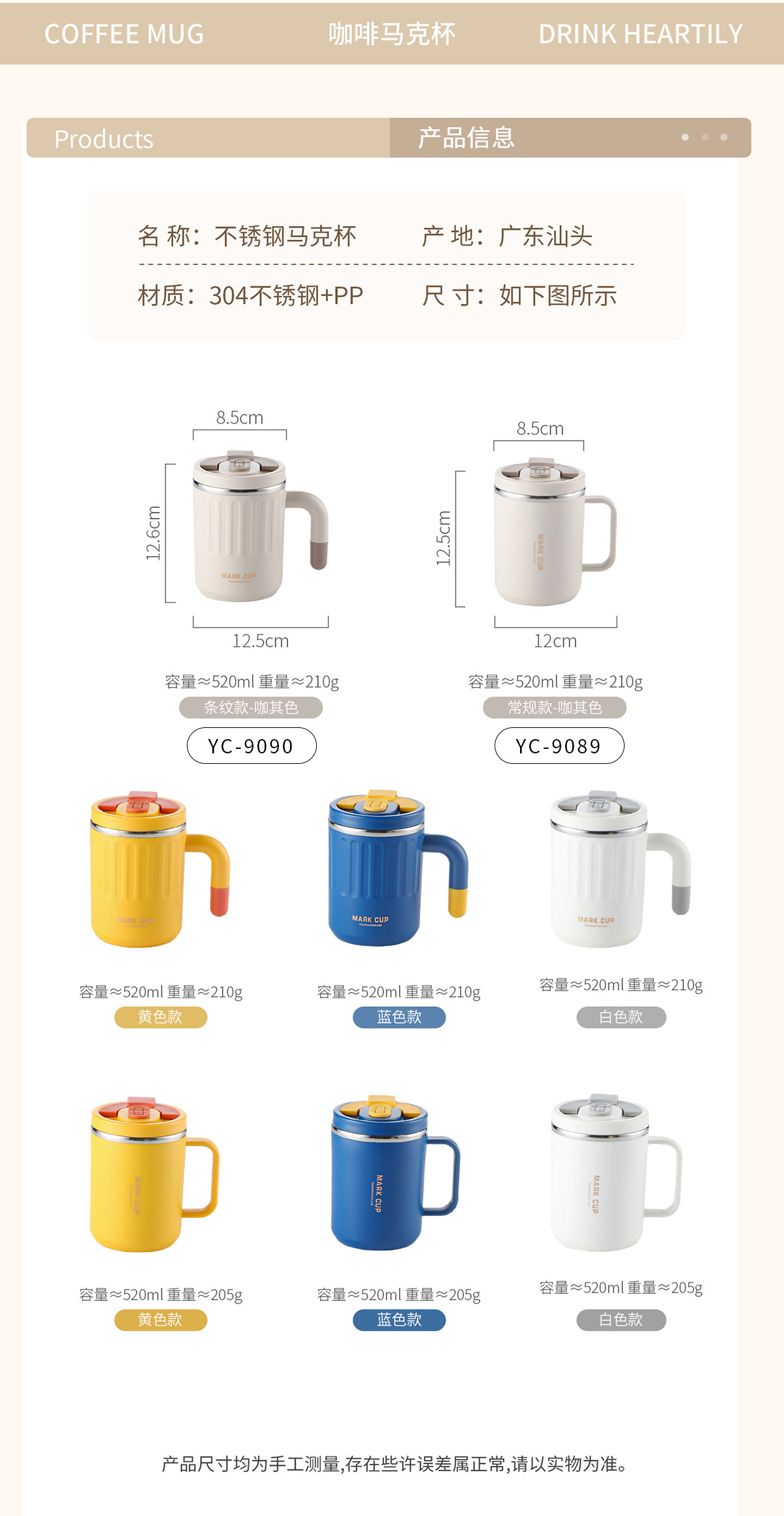 不銹鋼馬克杯(常規(guī)款/條紋款)520ml