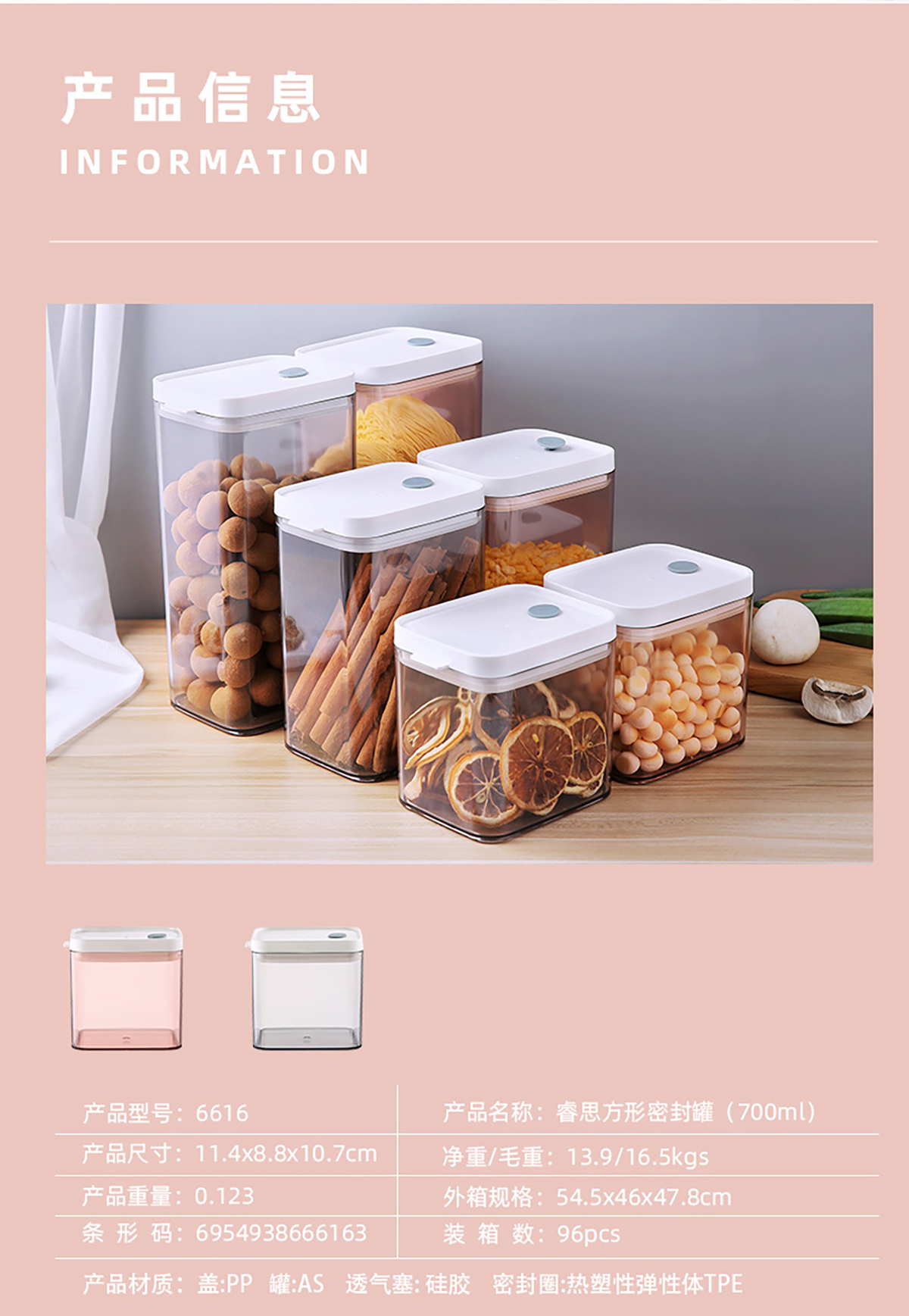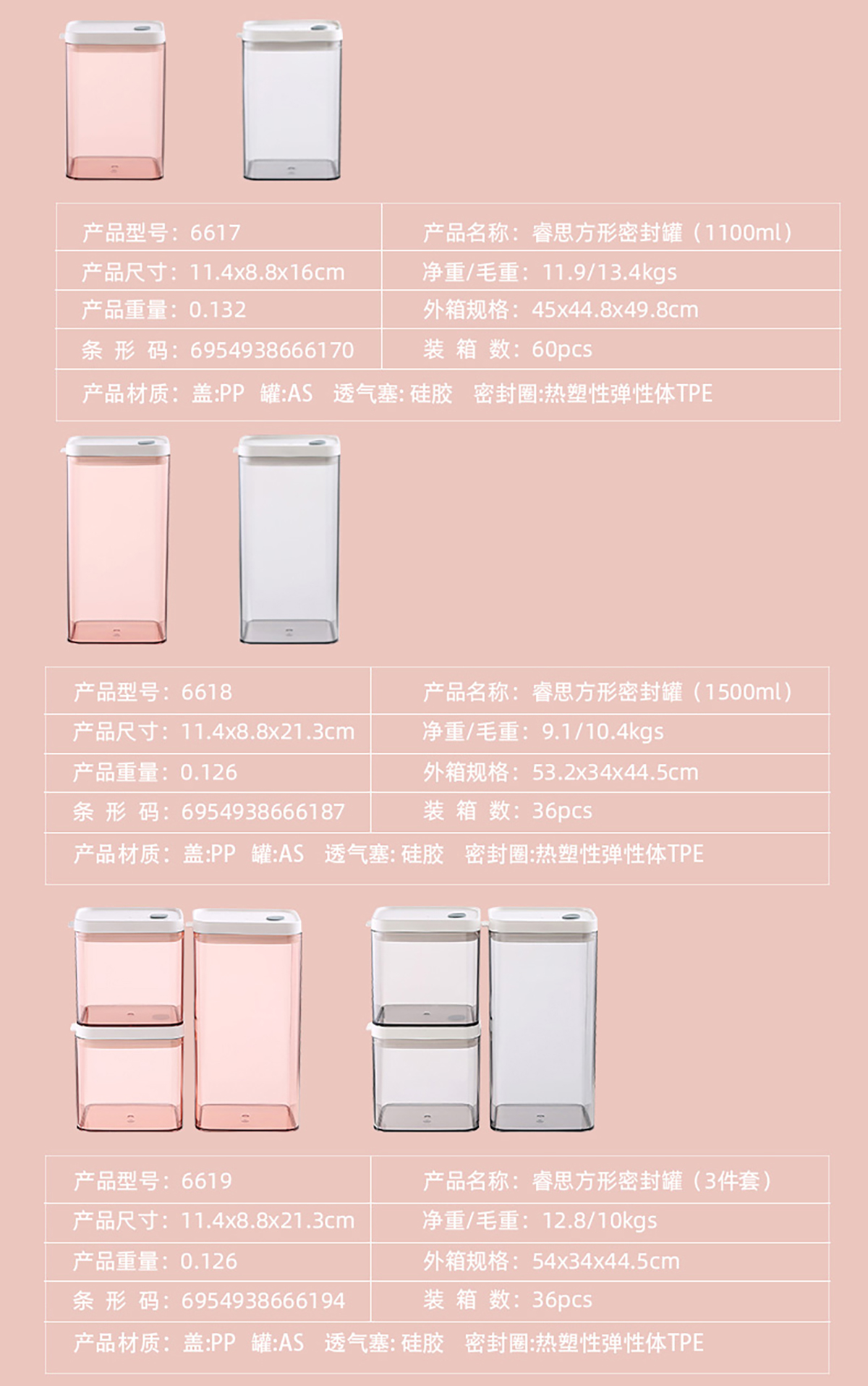 睿思長方形密封罐(700ml/1100ml/1500ml/1900ml)