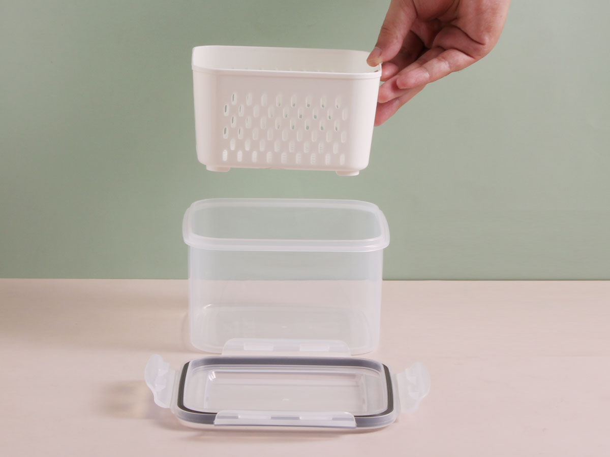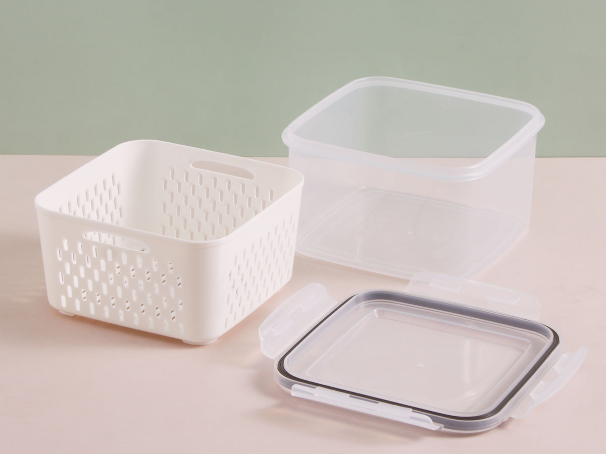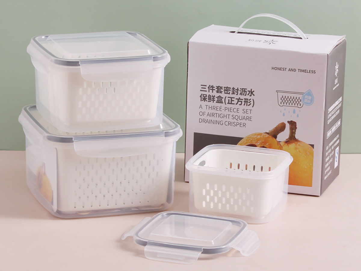 三件套密封瀝水保鮮盒(正方形)