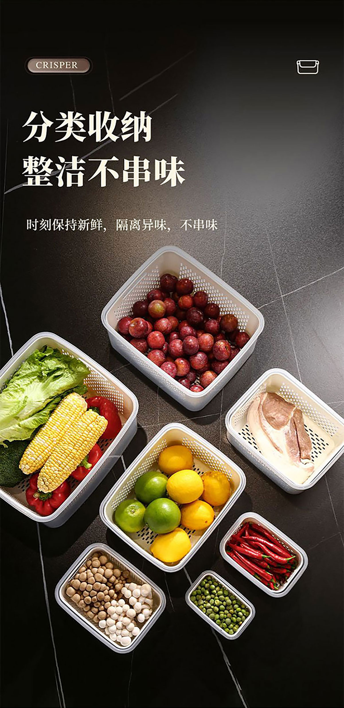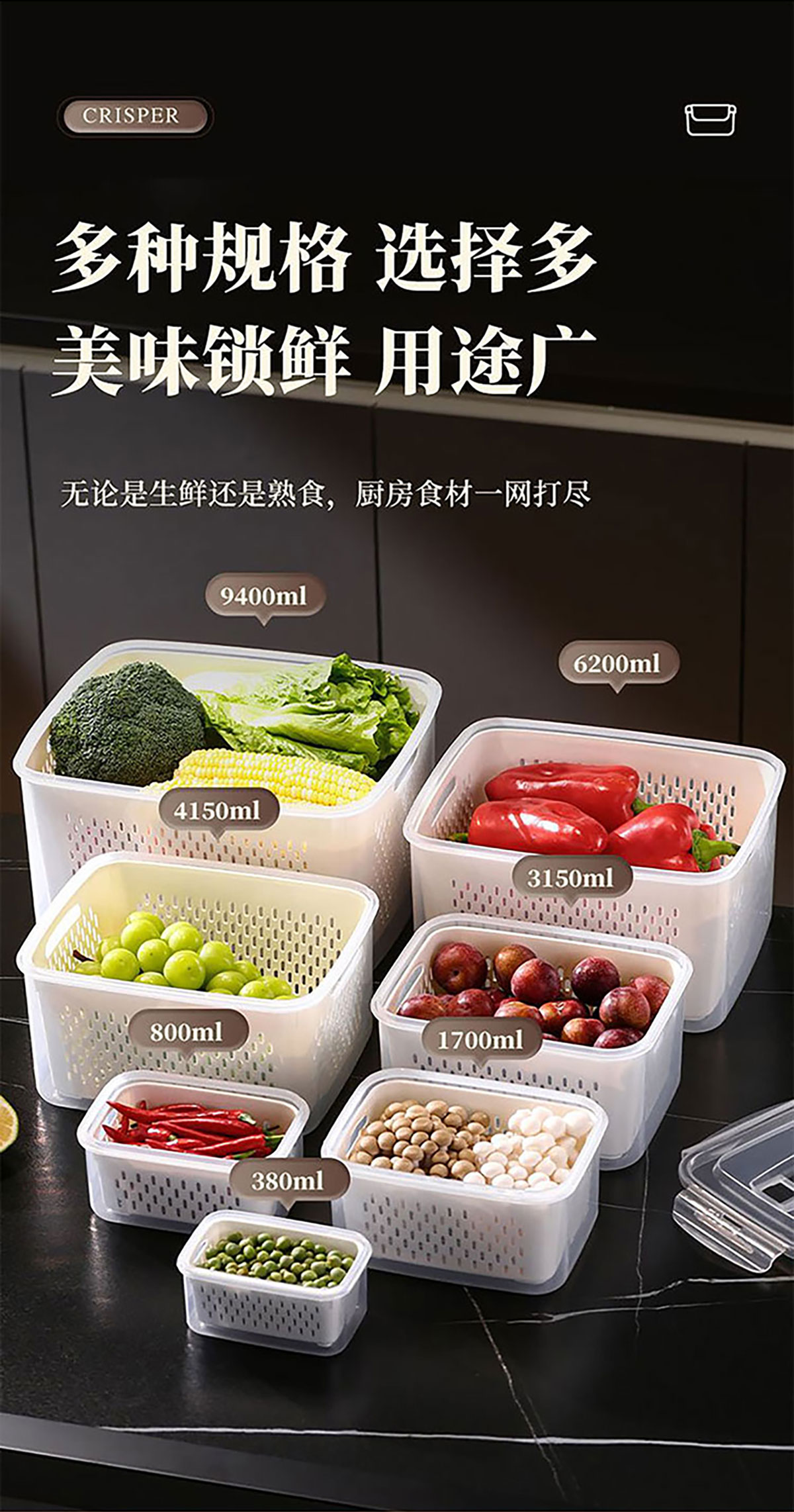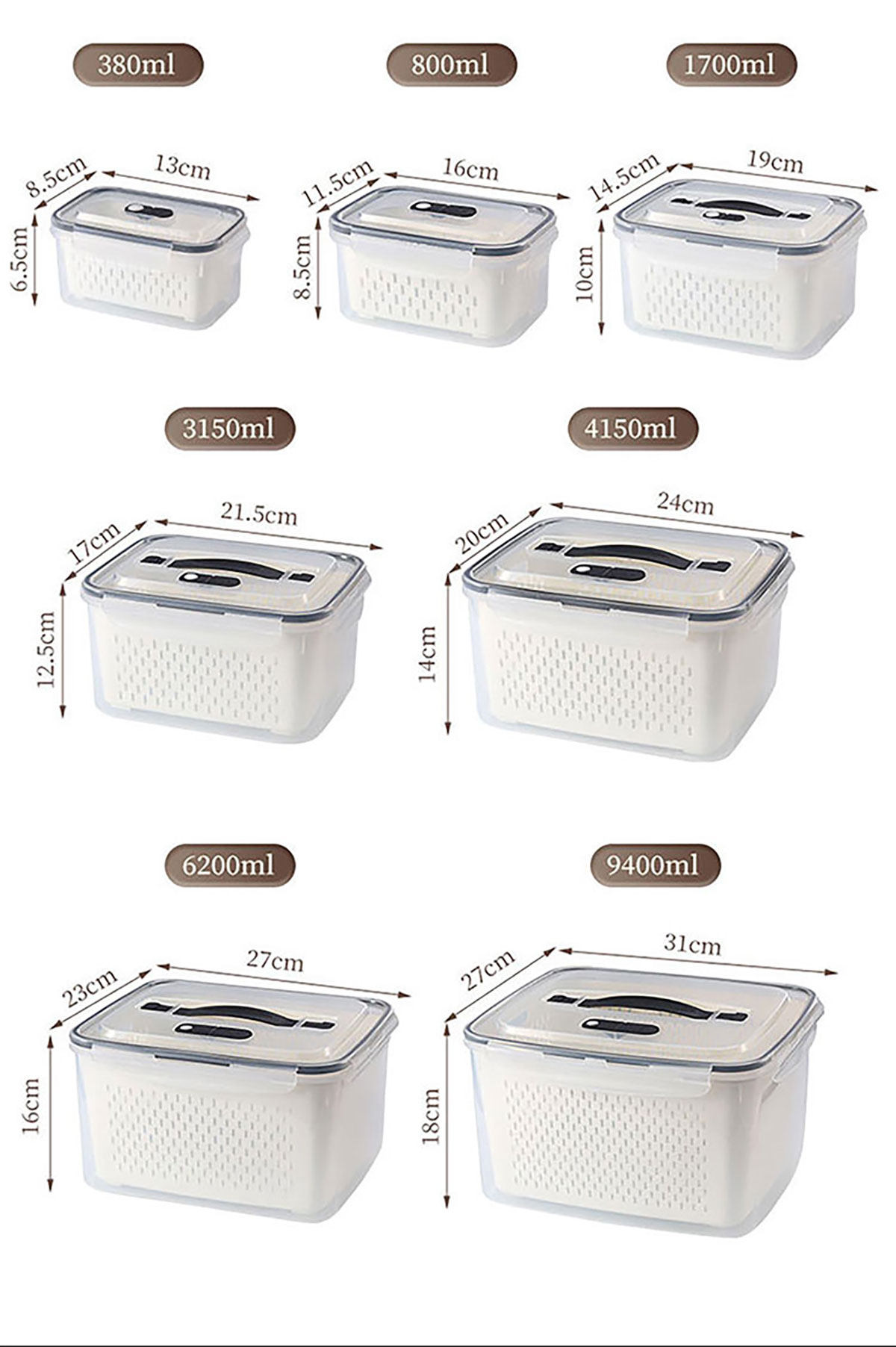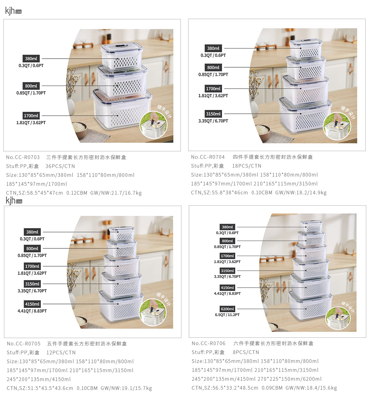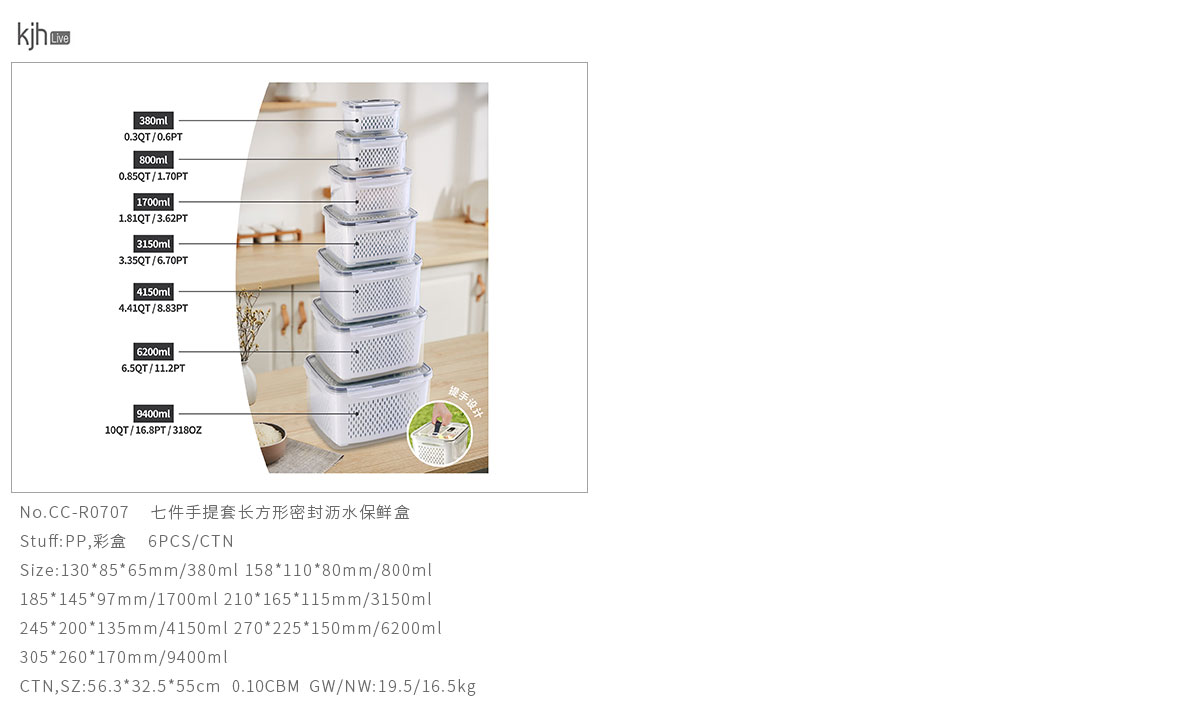 三件/四件/五件/六件/七件手提套長方形密封瀝水保鮮盒