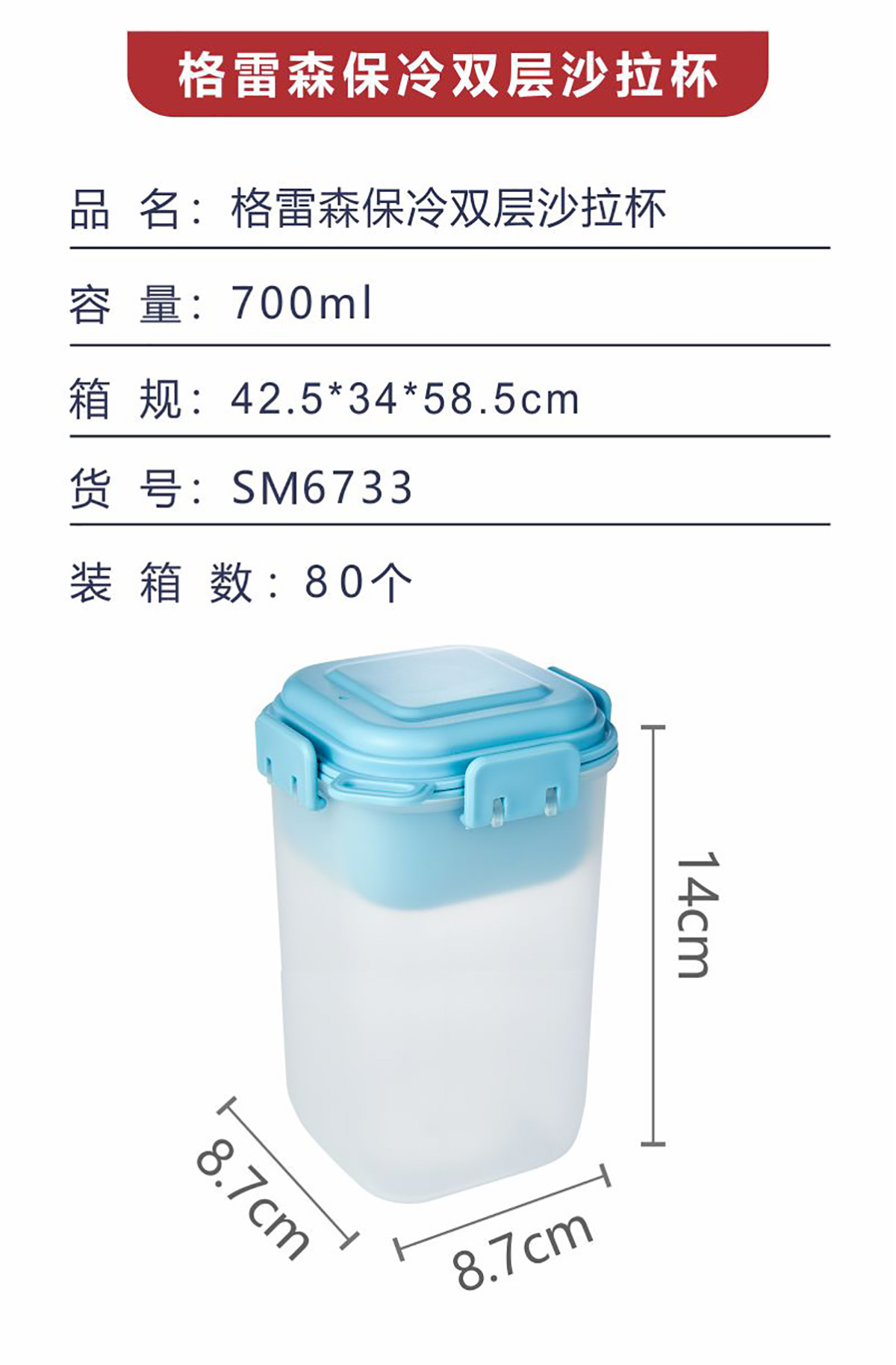 格雷森保冷雙層沙拉杯加高700ml