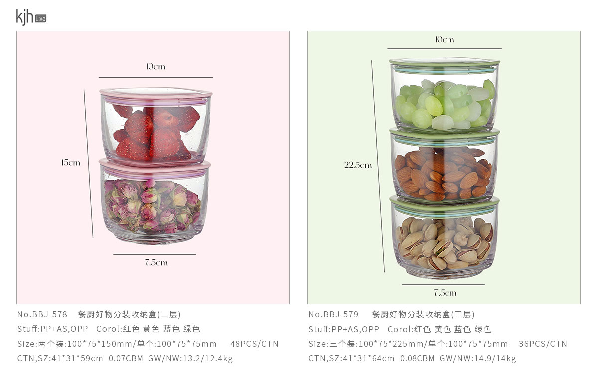 Size: BBJ-578(二層):兩個(gè)裝:100*75*150mm/單個(gè):100*75*75mm