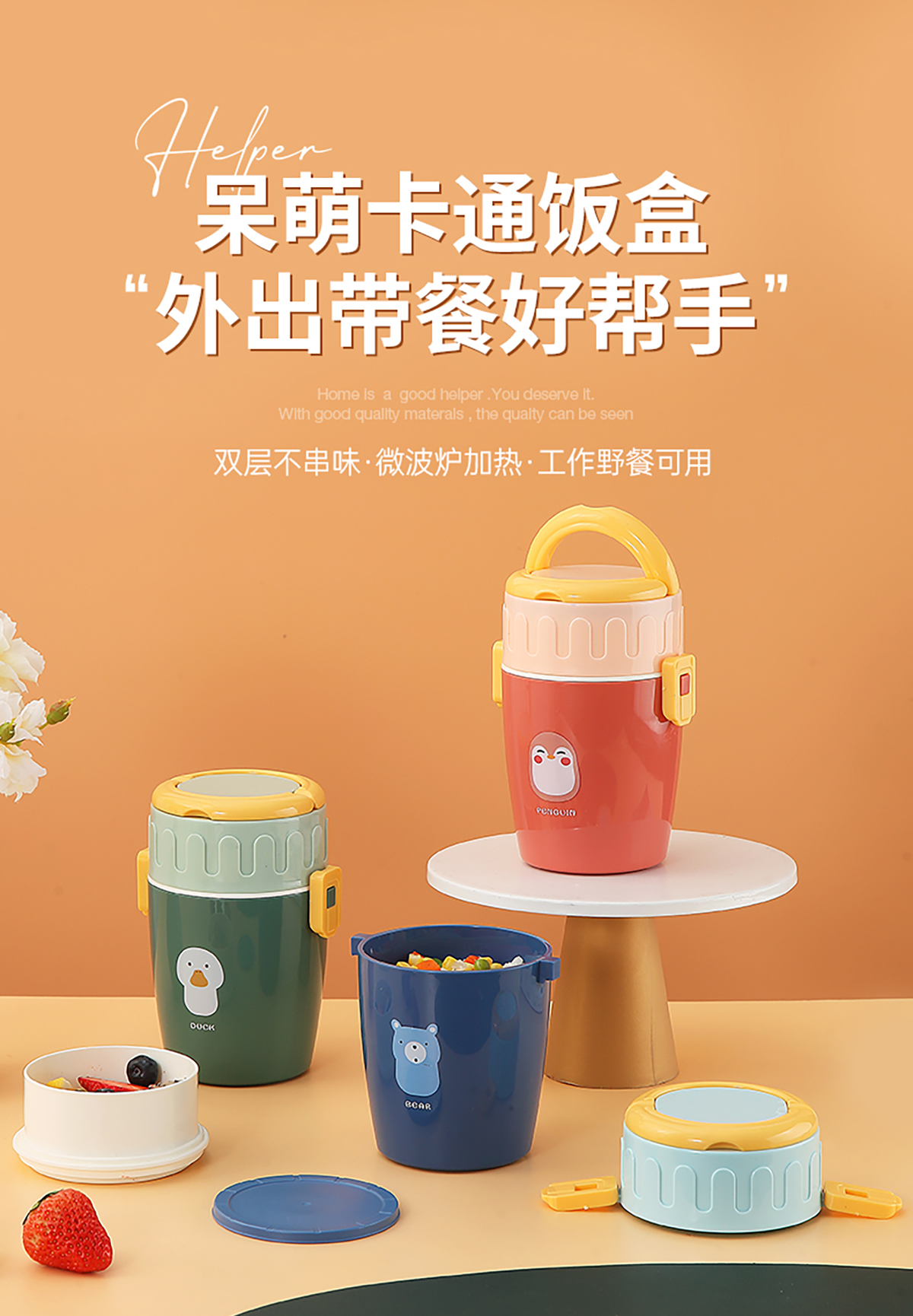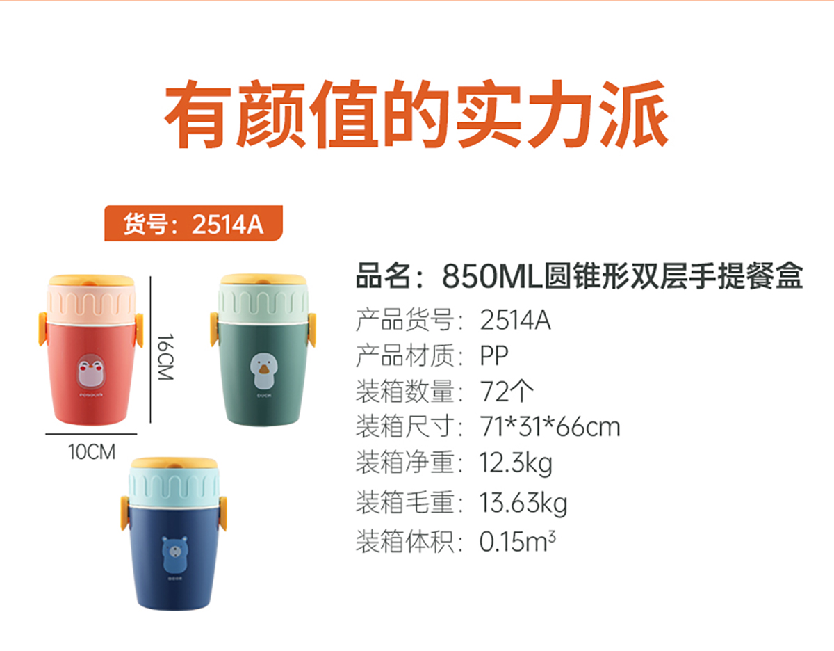 呆萌卡通雙層餐盒(圓錐形)850ml