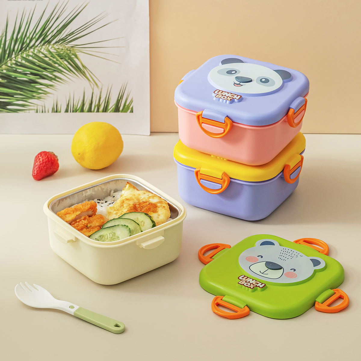 童樂長方形/圓形/方形不銹鋼飯盒