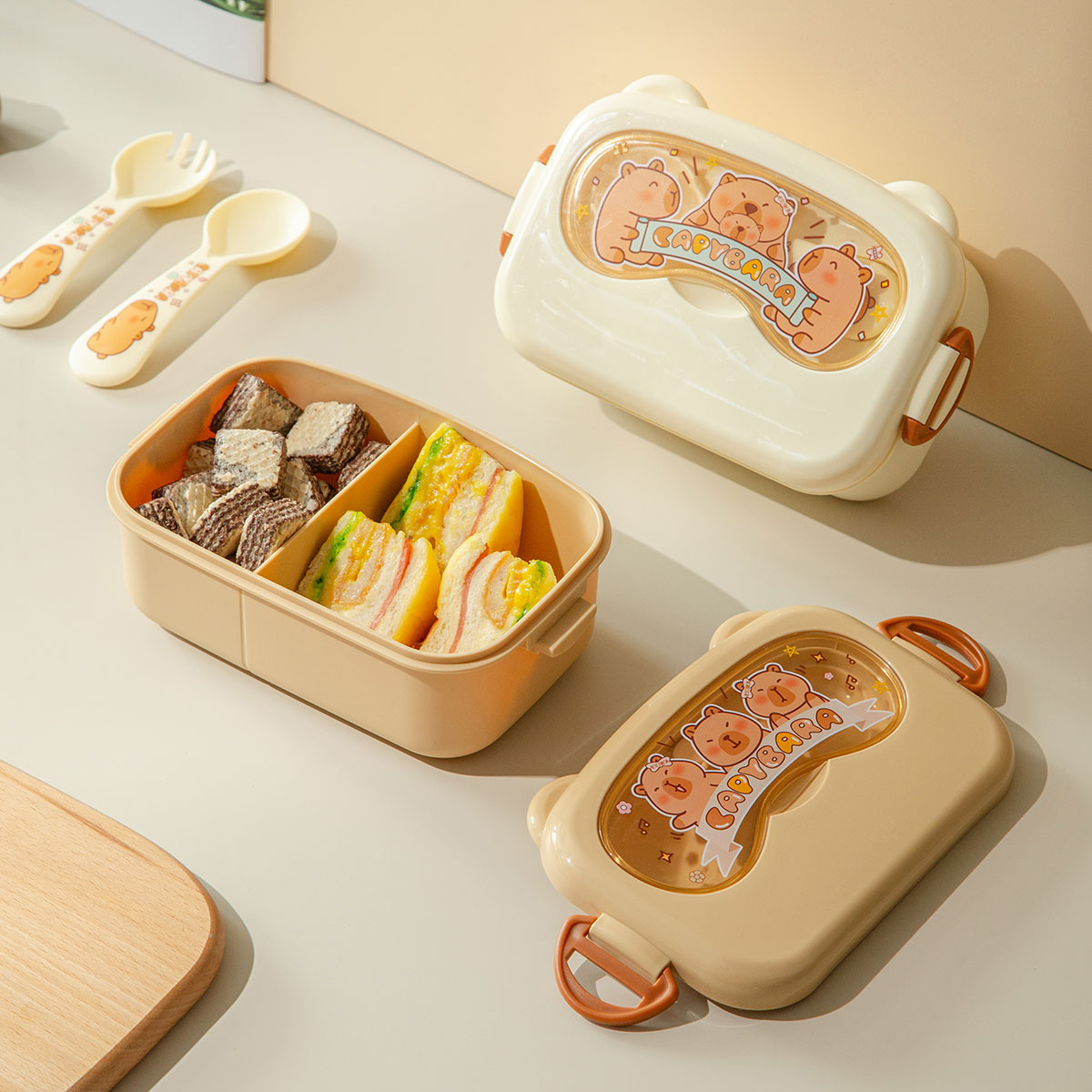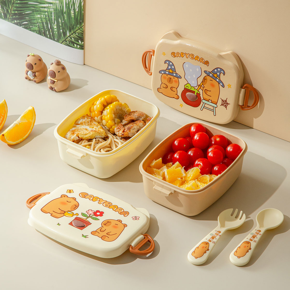 魔法豚長方形/萌鏡豚/趣照豚分格便當盒
