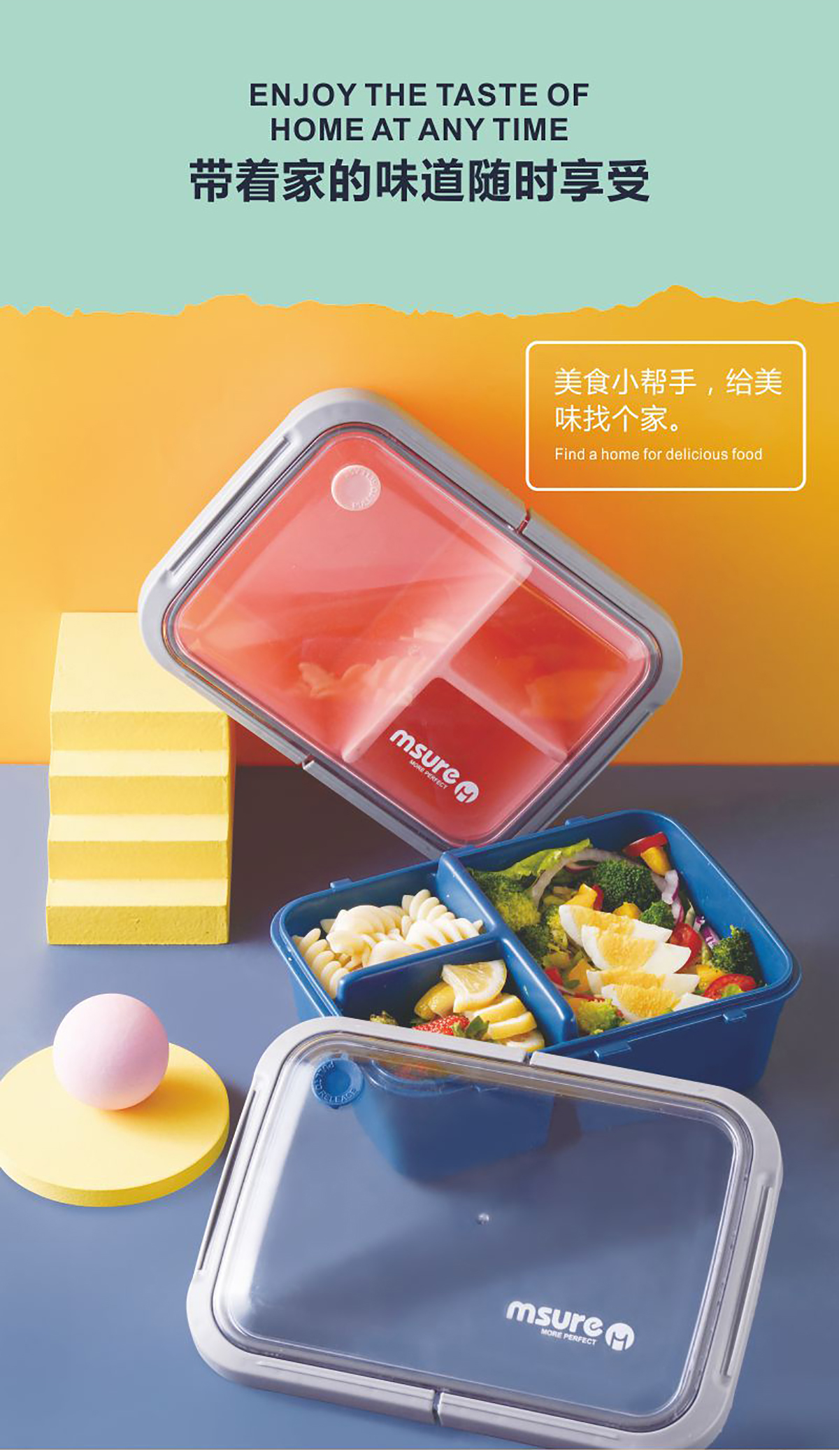 扣拉田園密封飯盒(三格)1.2L