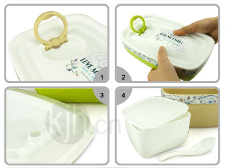 • 1.隱藏式氣閥設(shè)計(jì),壓下拉環(huán),飯盒即進(jìn)入密封狀態(tài)。打開(kāi)飯盒的盒蓋時(shí),只需把拉環(huán)板起拉環(huán)氣閥打開(kāi),便可輕松拉起盒蓋。