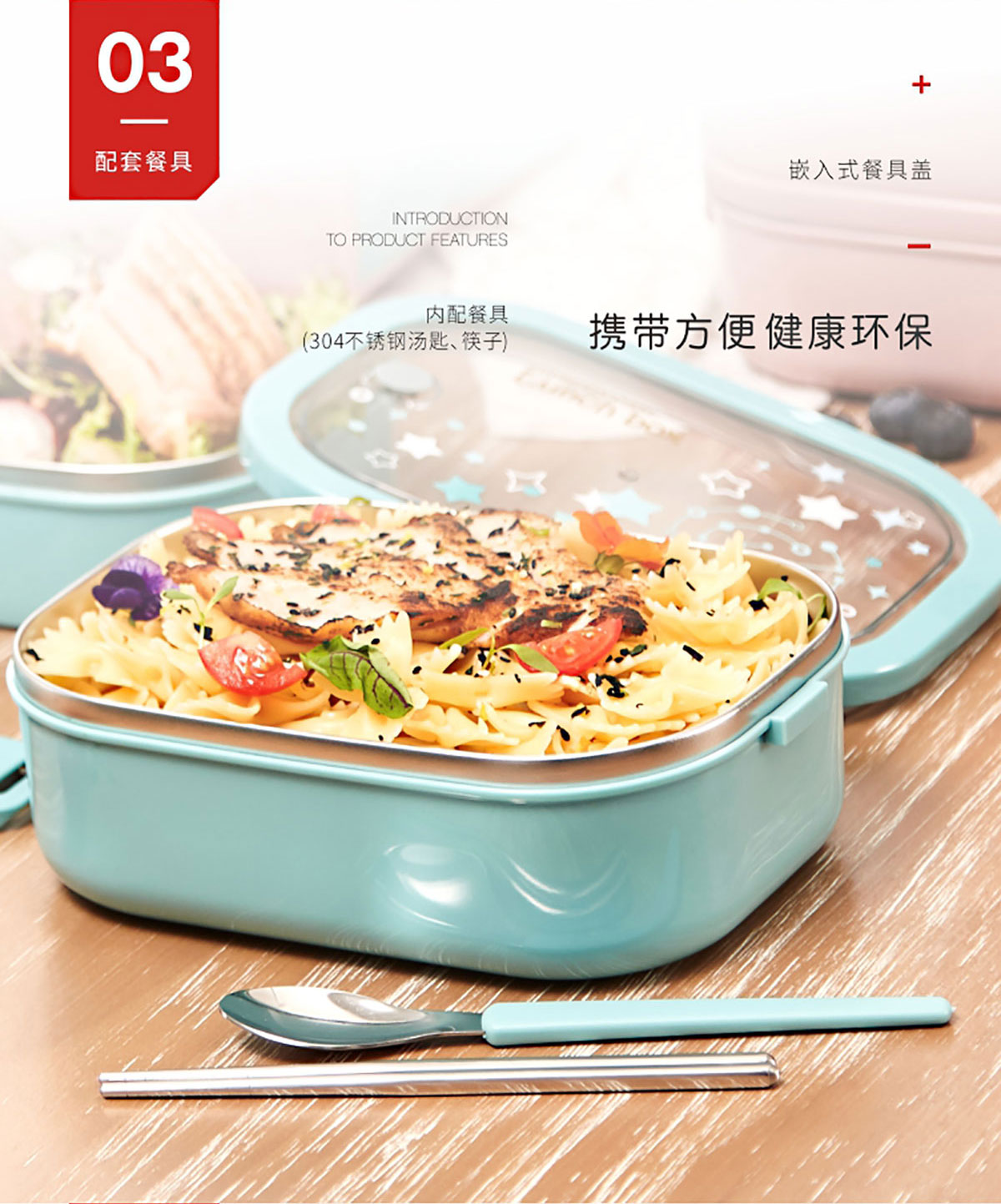 美悅雙層不銹鋼餐盒(帶餐具/附送餐盒袋)2300ml