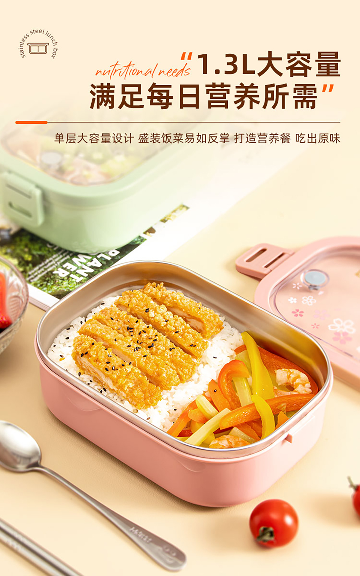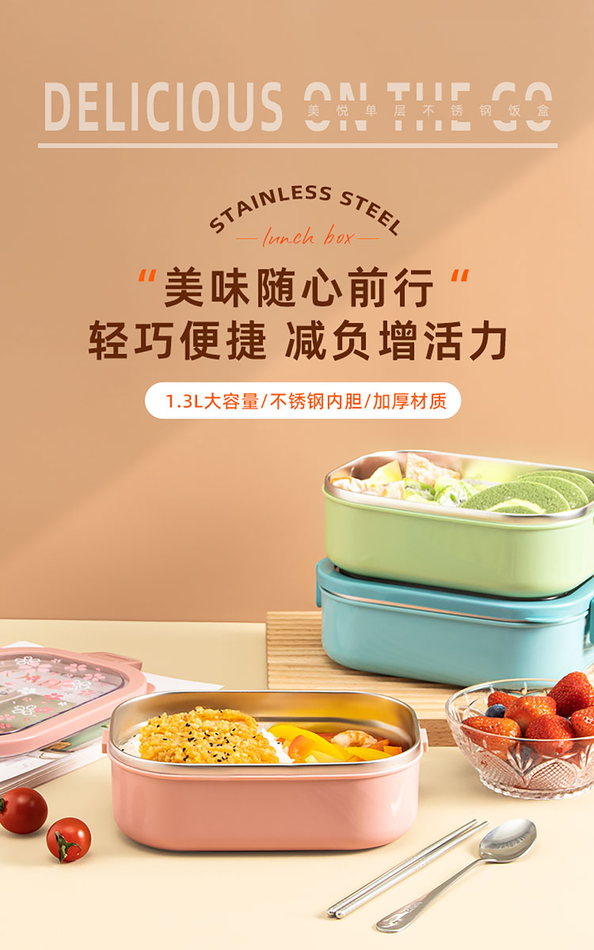 美悅單層不銹鋼餐盒1300ml