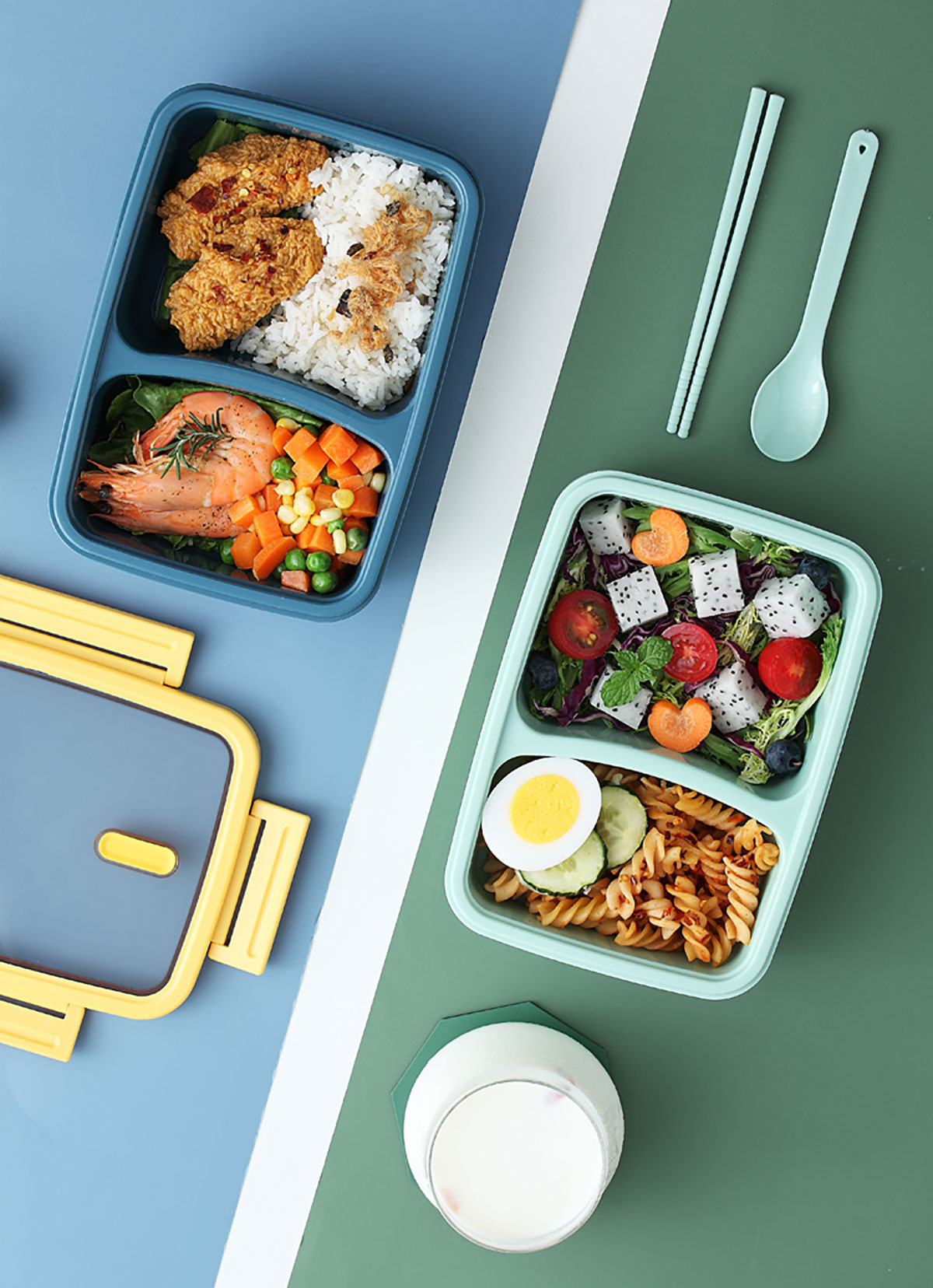 莫蘭迪長方雙格飯盒
