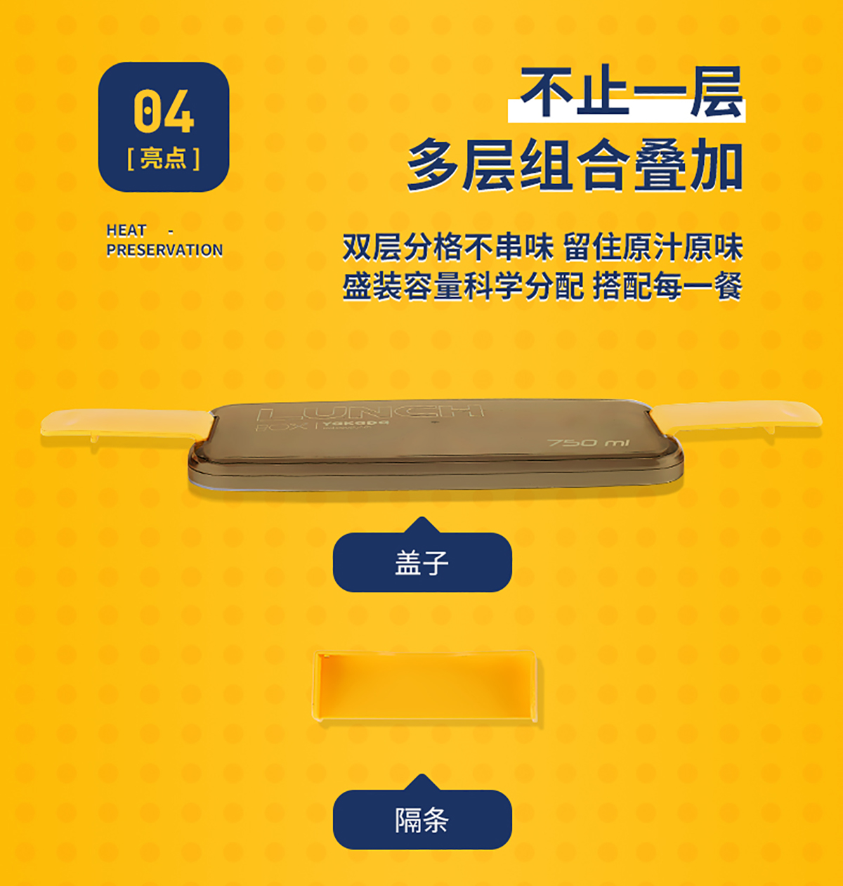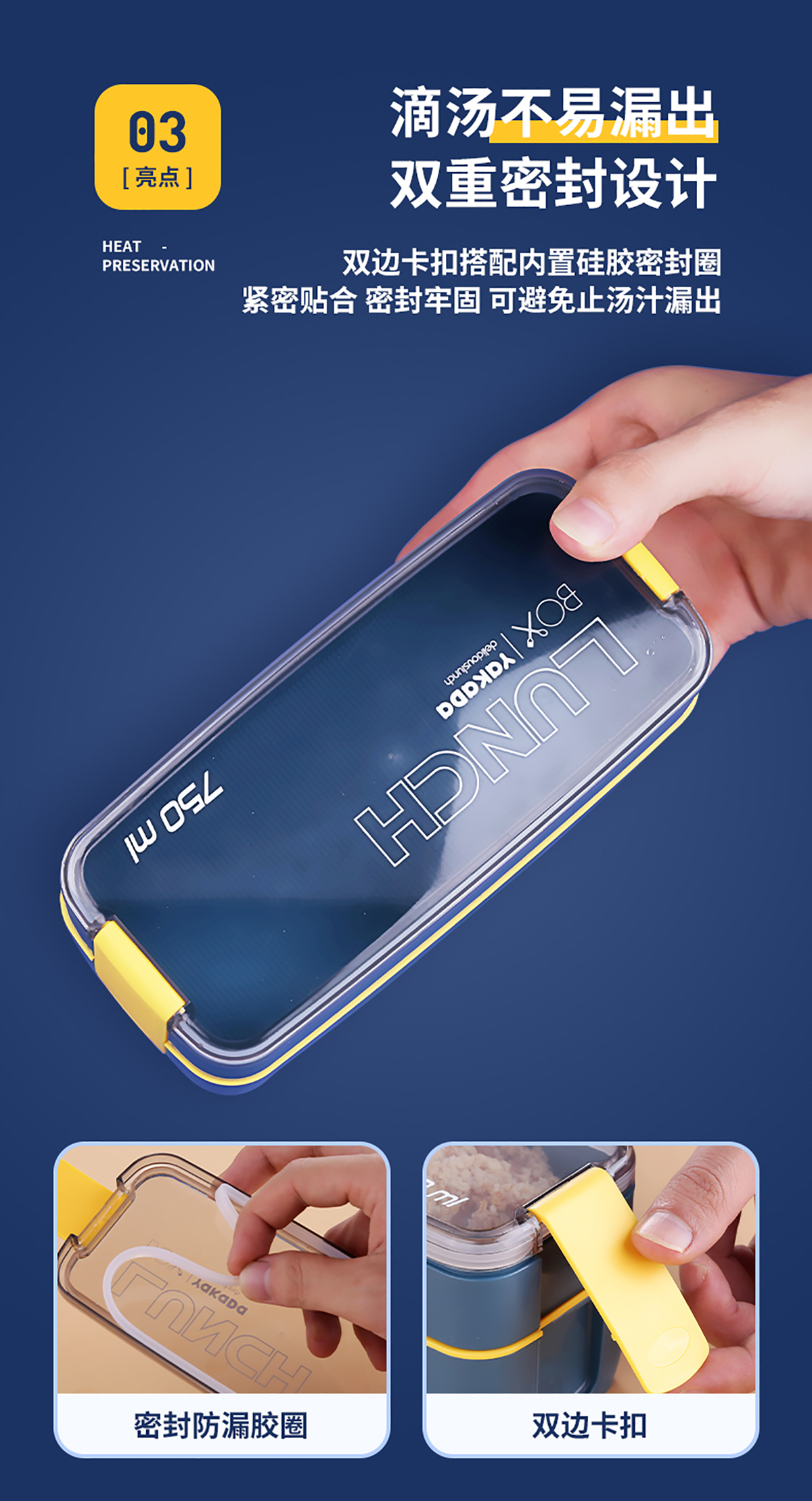 莫蘭迪透明蓋飯盒(長扣)750ml