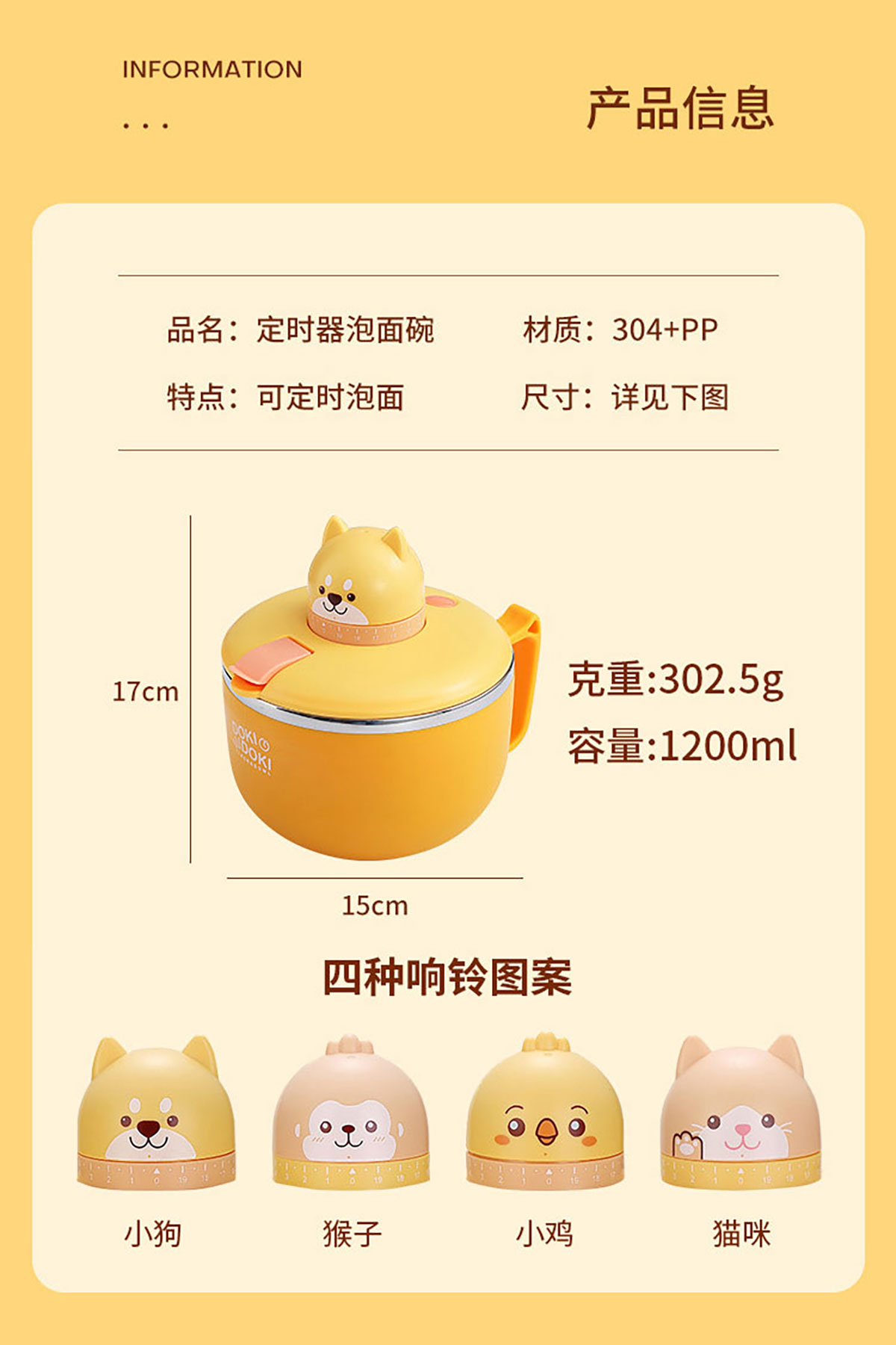 動(dòng)物計(jì)時(shí)器泡面碗1200ml