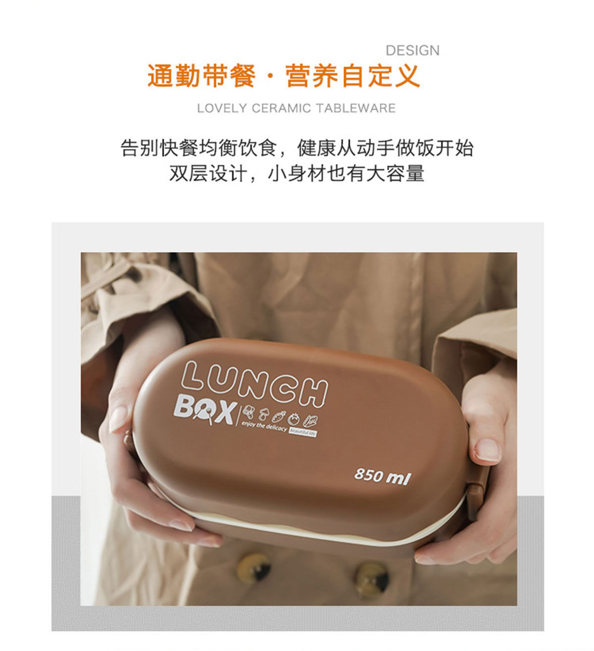 小歐式雙層便當盒850ml