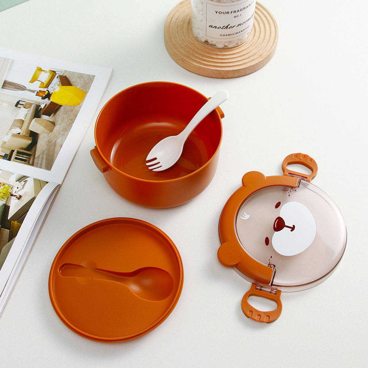 樂(lè)味熊圓形單層/雙層/三層便當(dāng)盒(通格/分格)