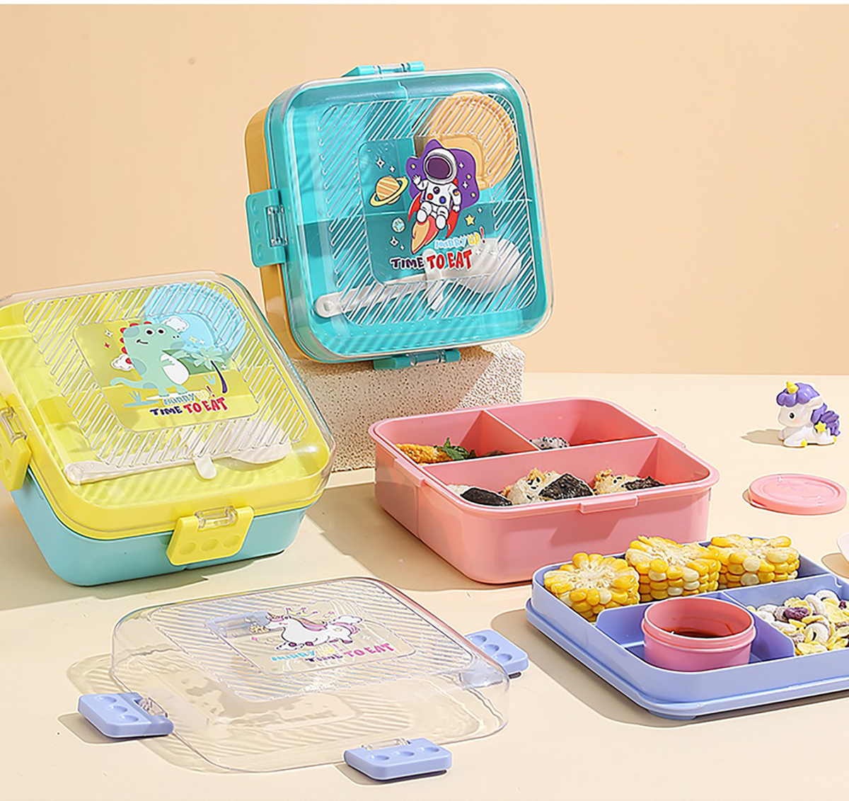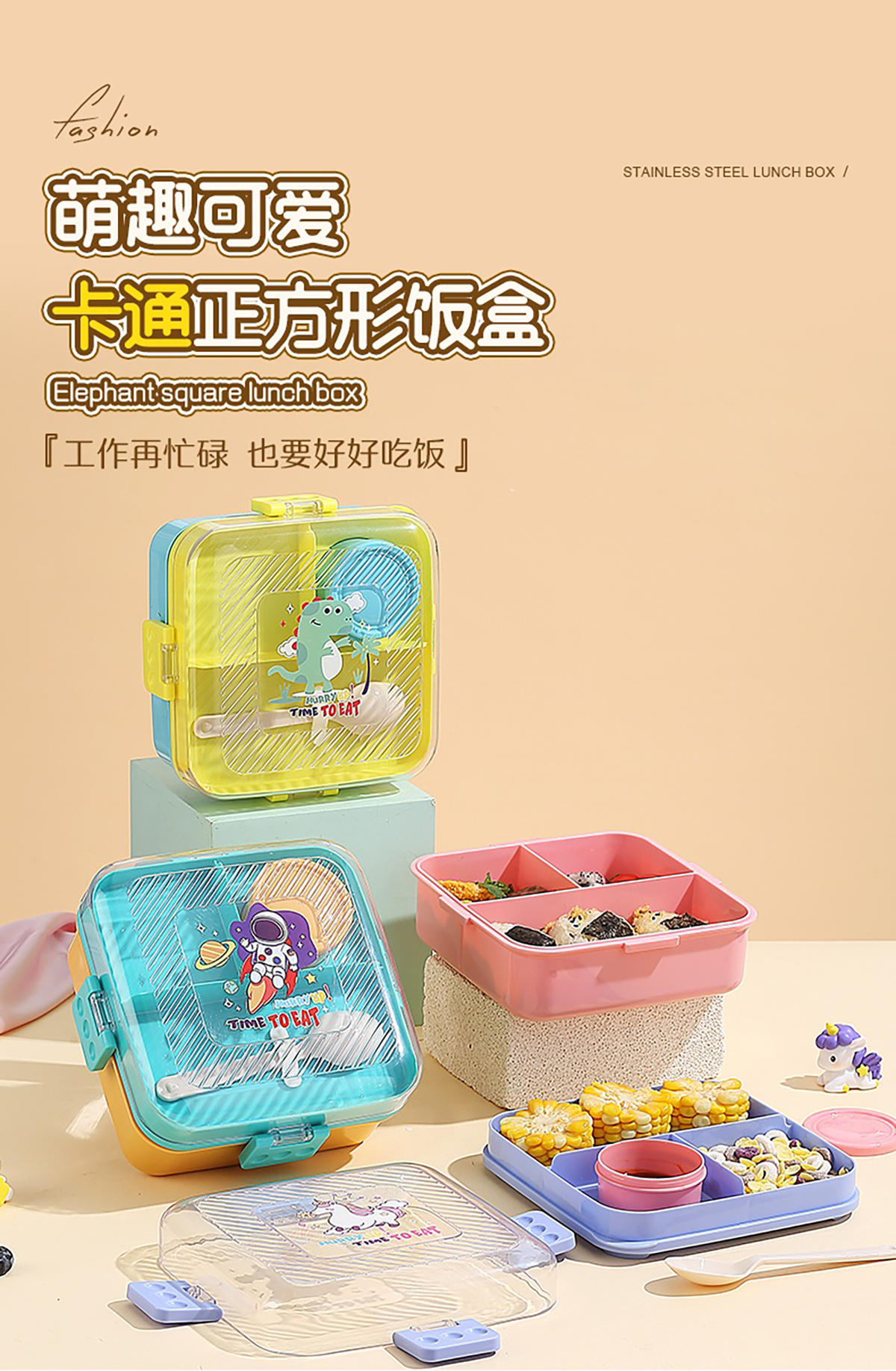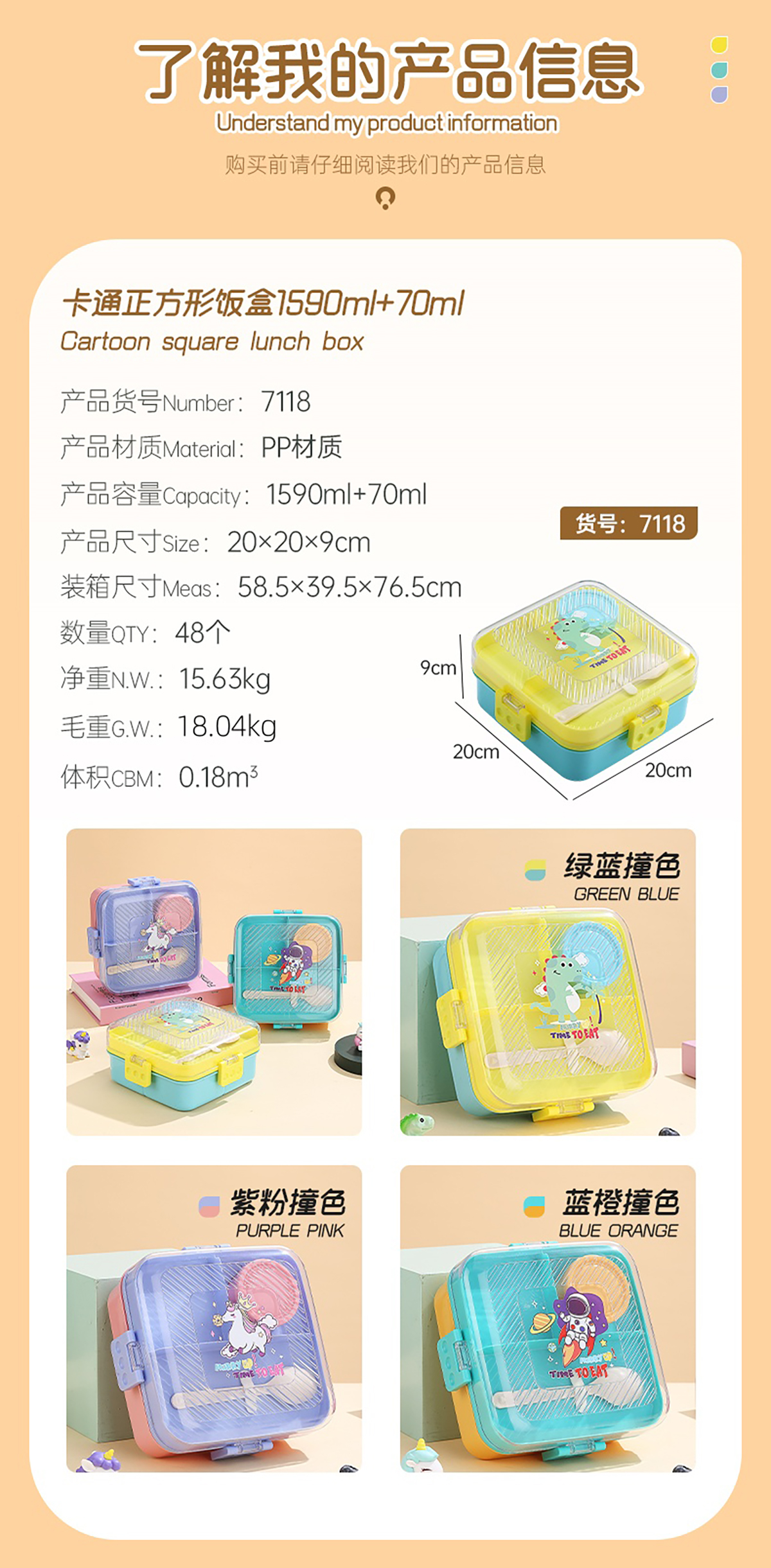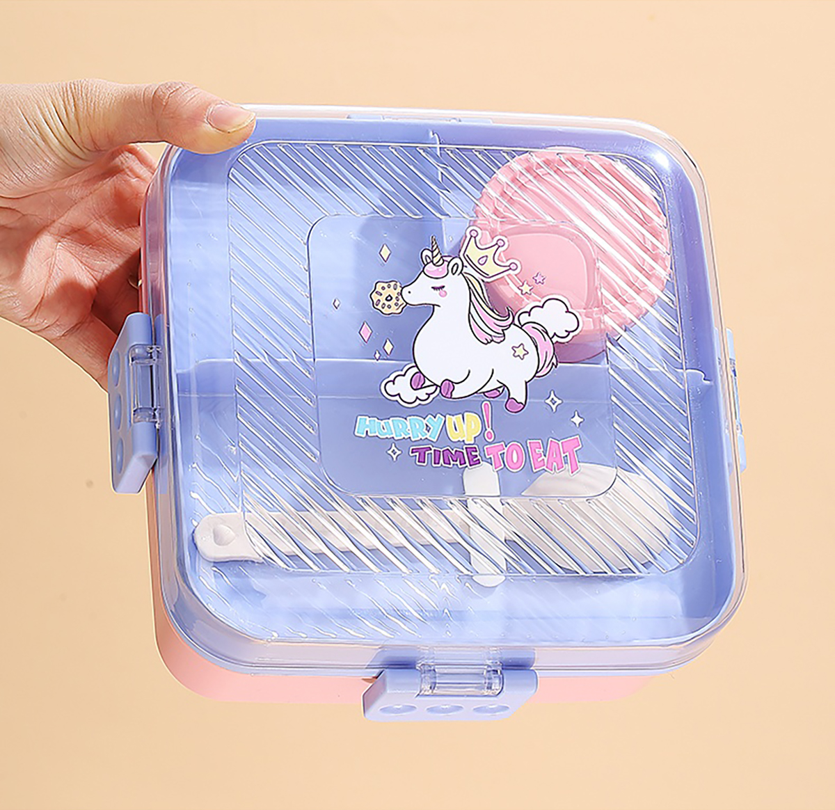 卡通正方形飯盒(塑料)1590ml+70ml