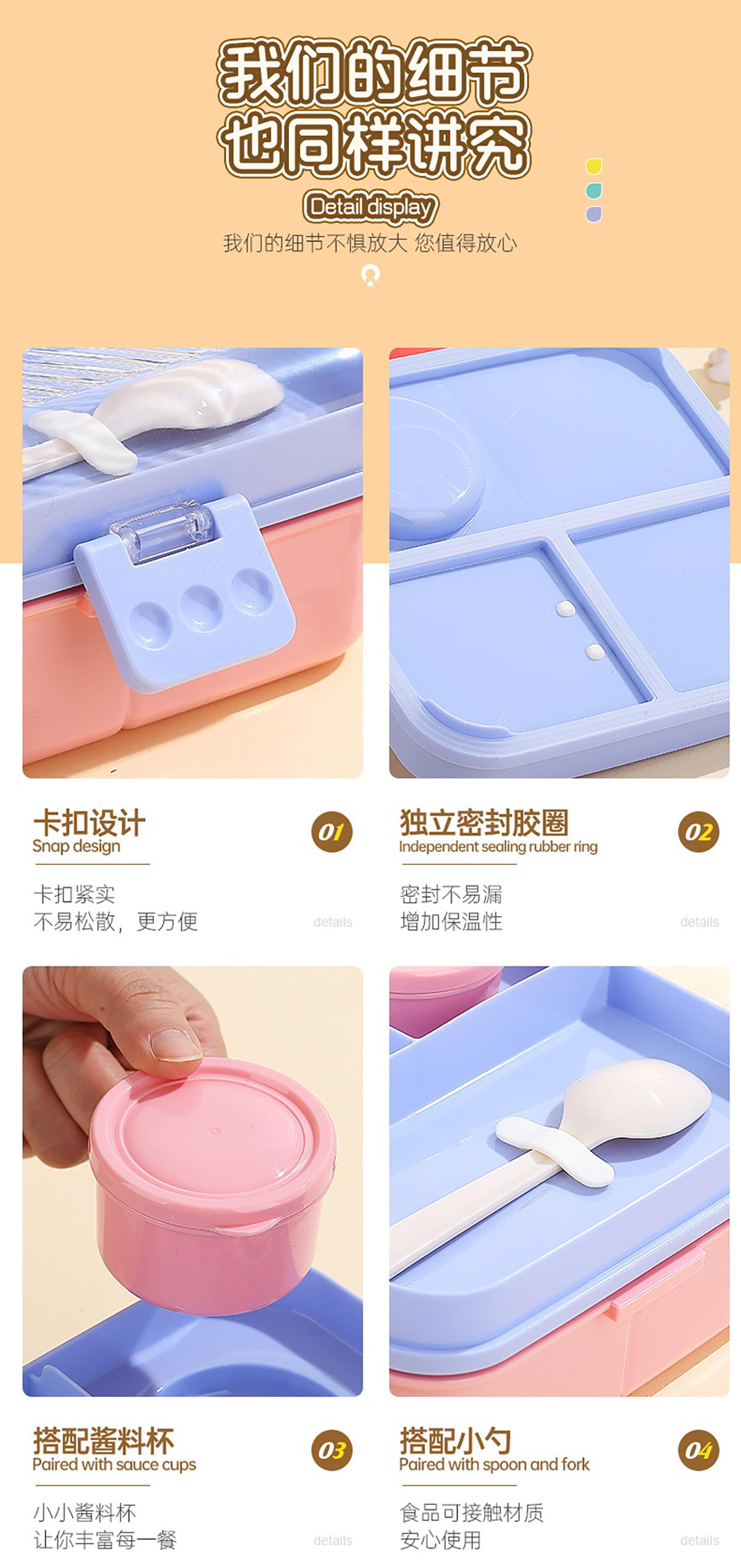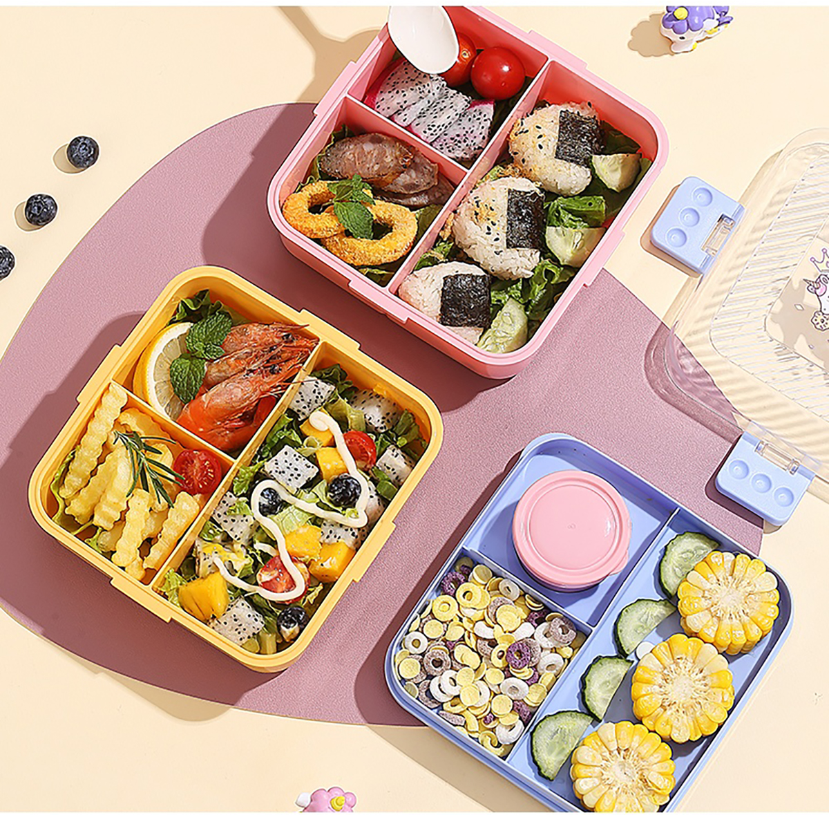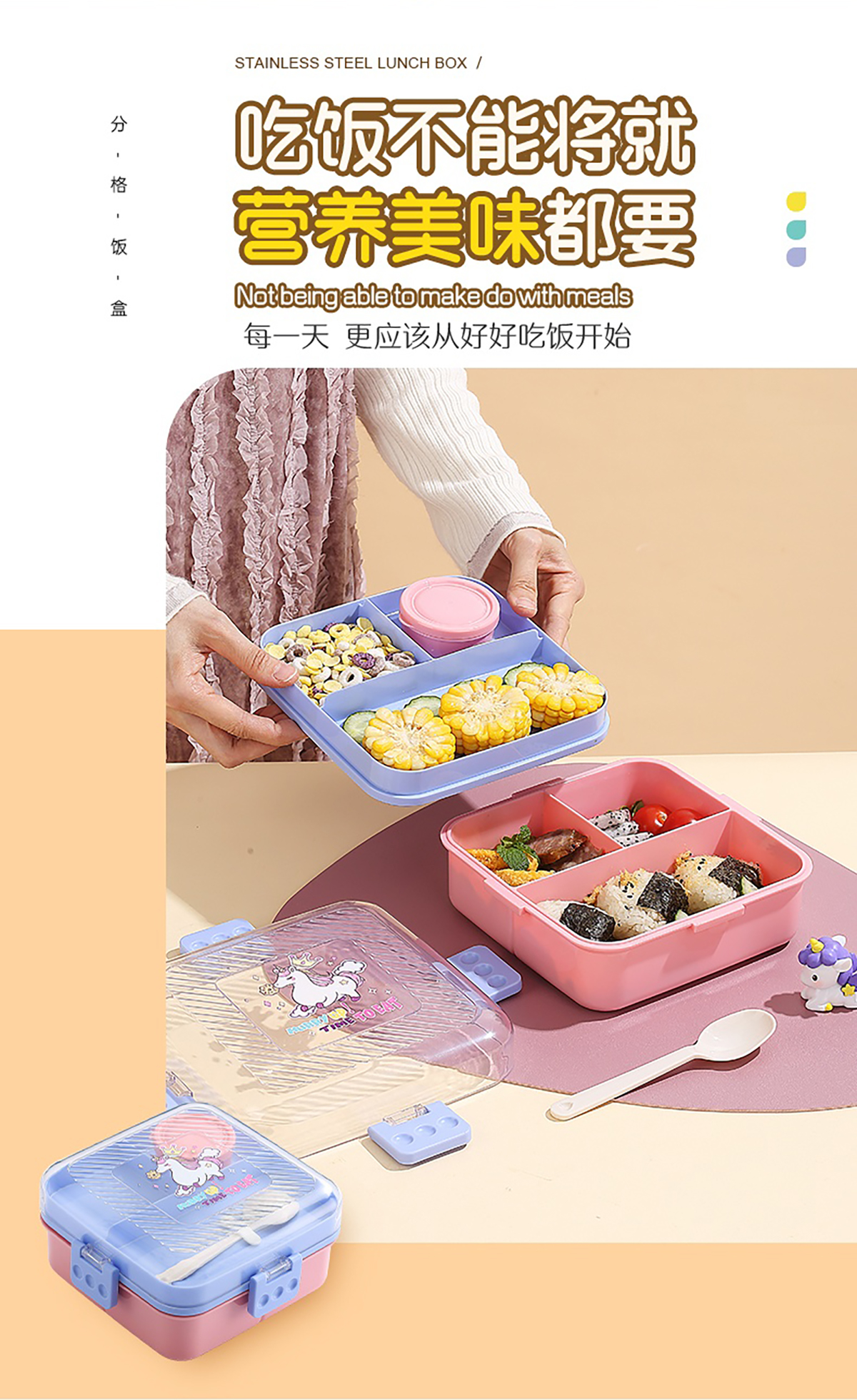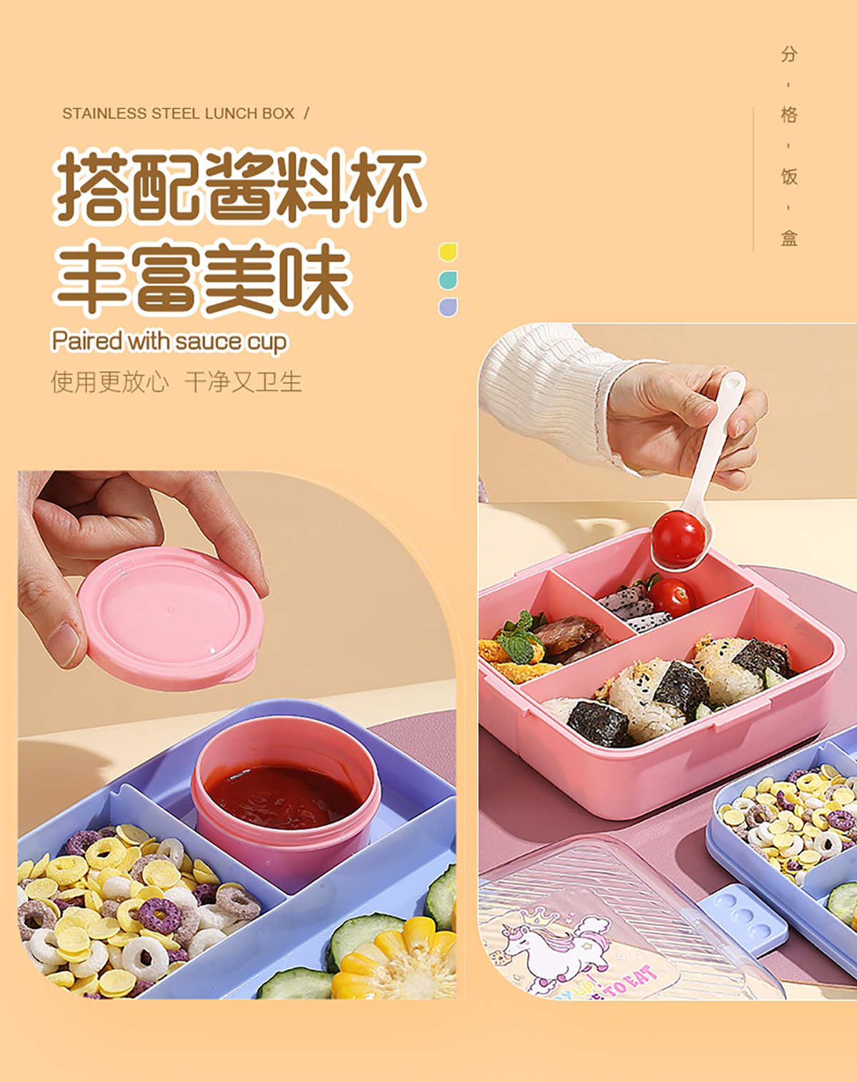卡通正方形飯盒(塑料)1590ml+70ml