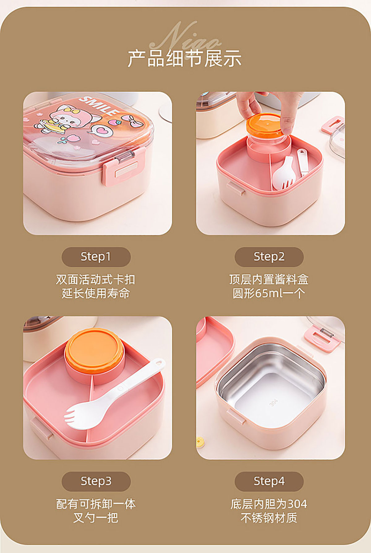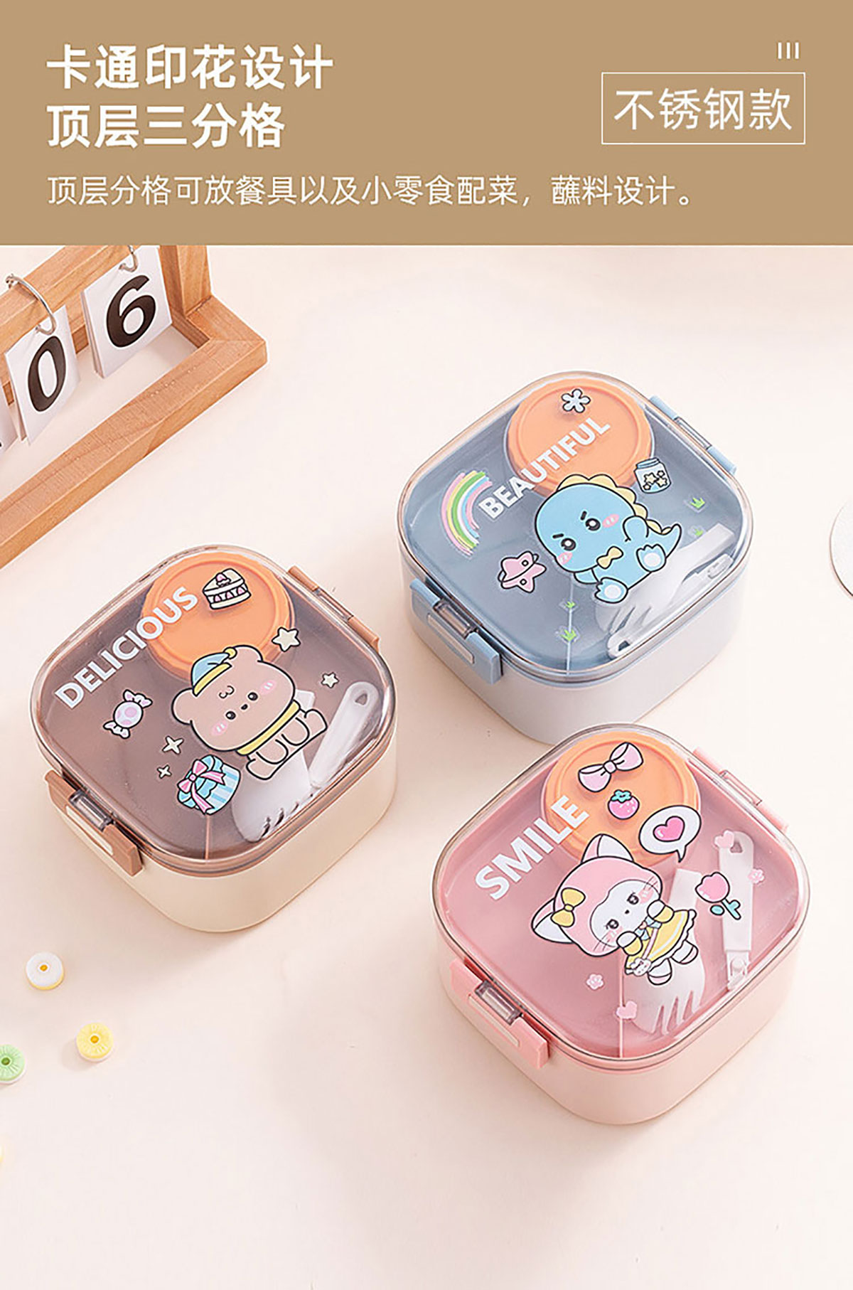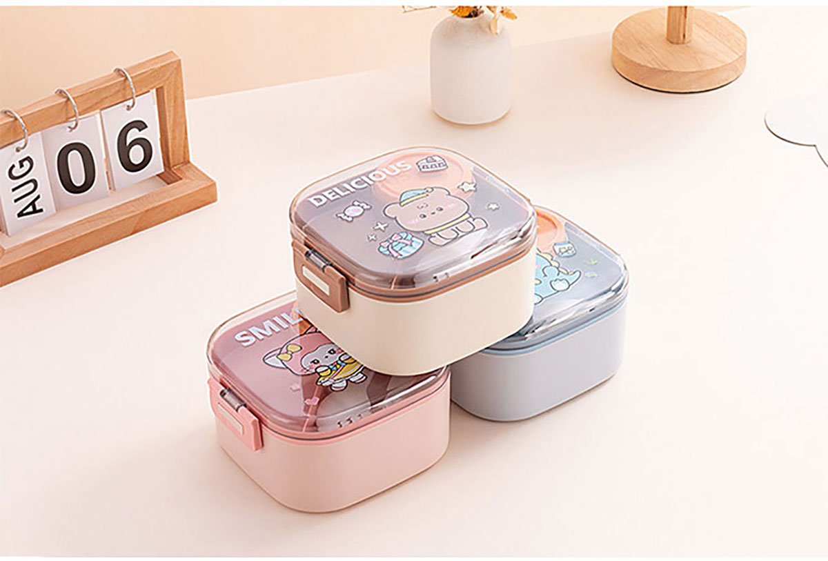 卡通方形不銹鋼飯盒(帶沙拉盒)