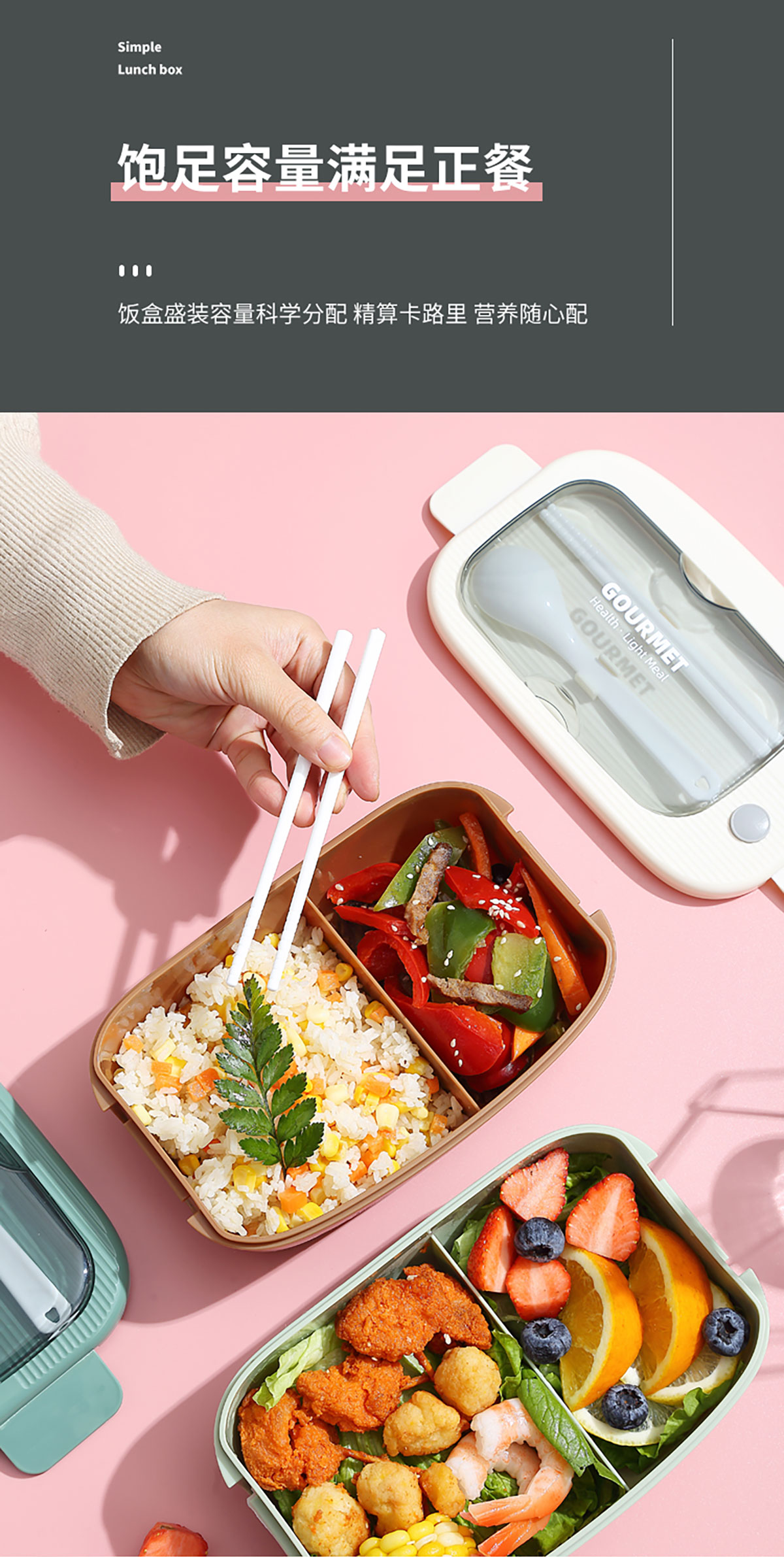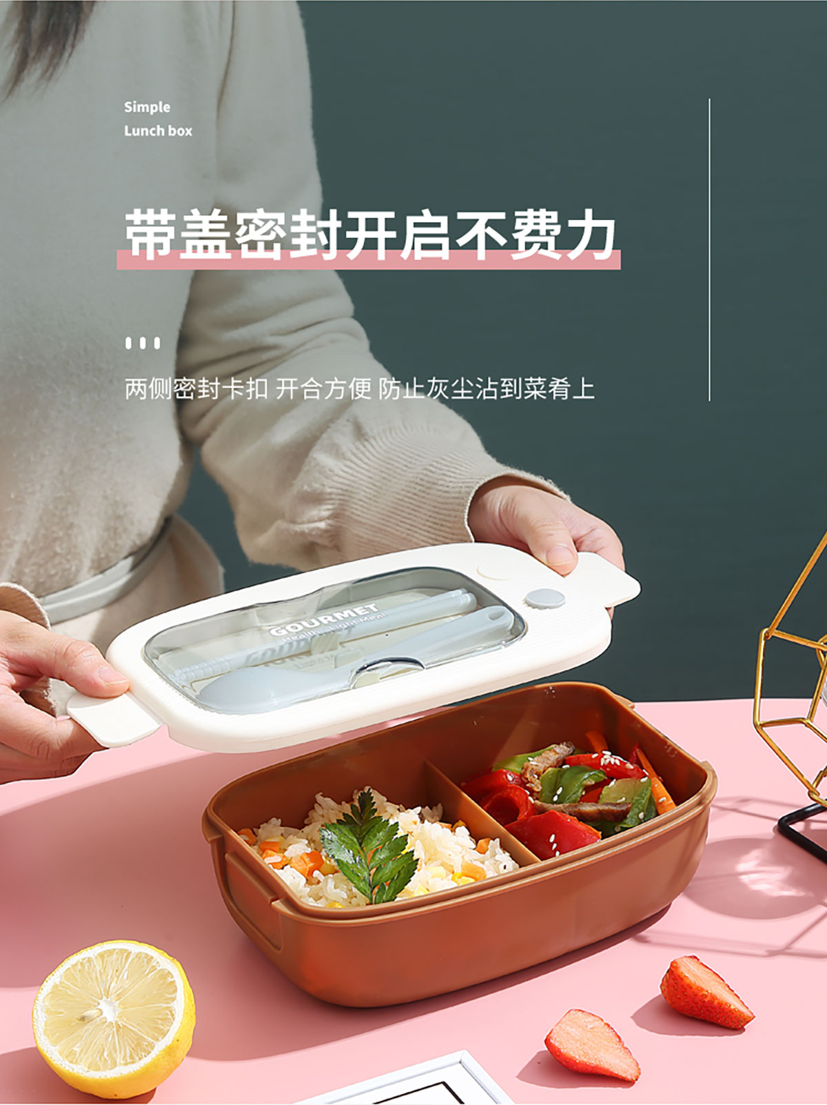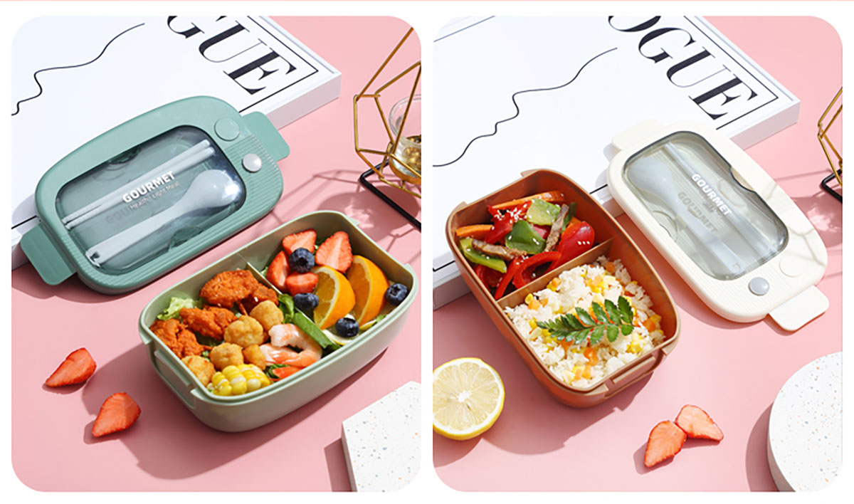 優(yōu)品塑料飯盒1100ml 配叉勺