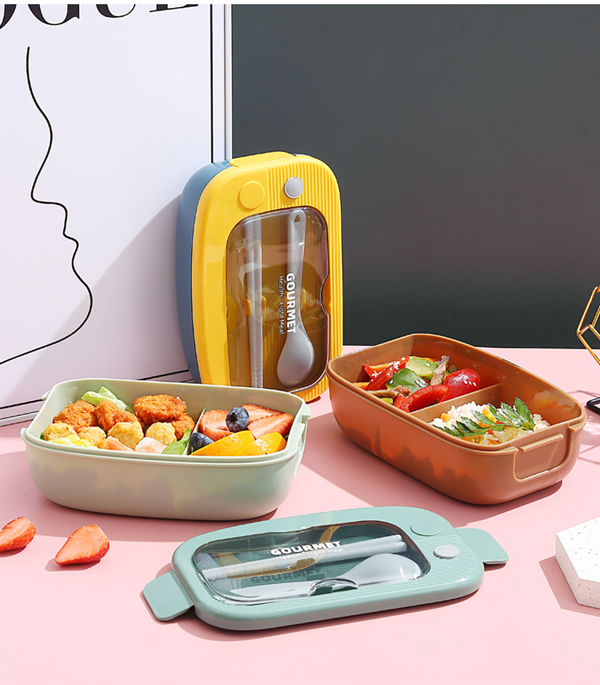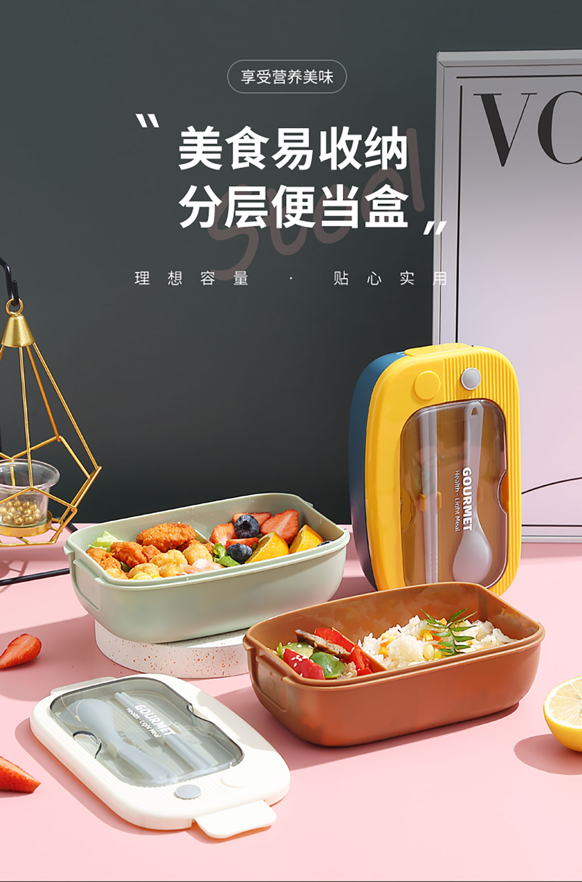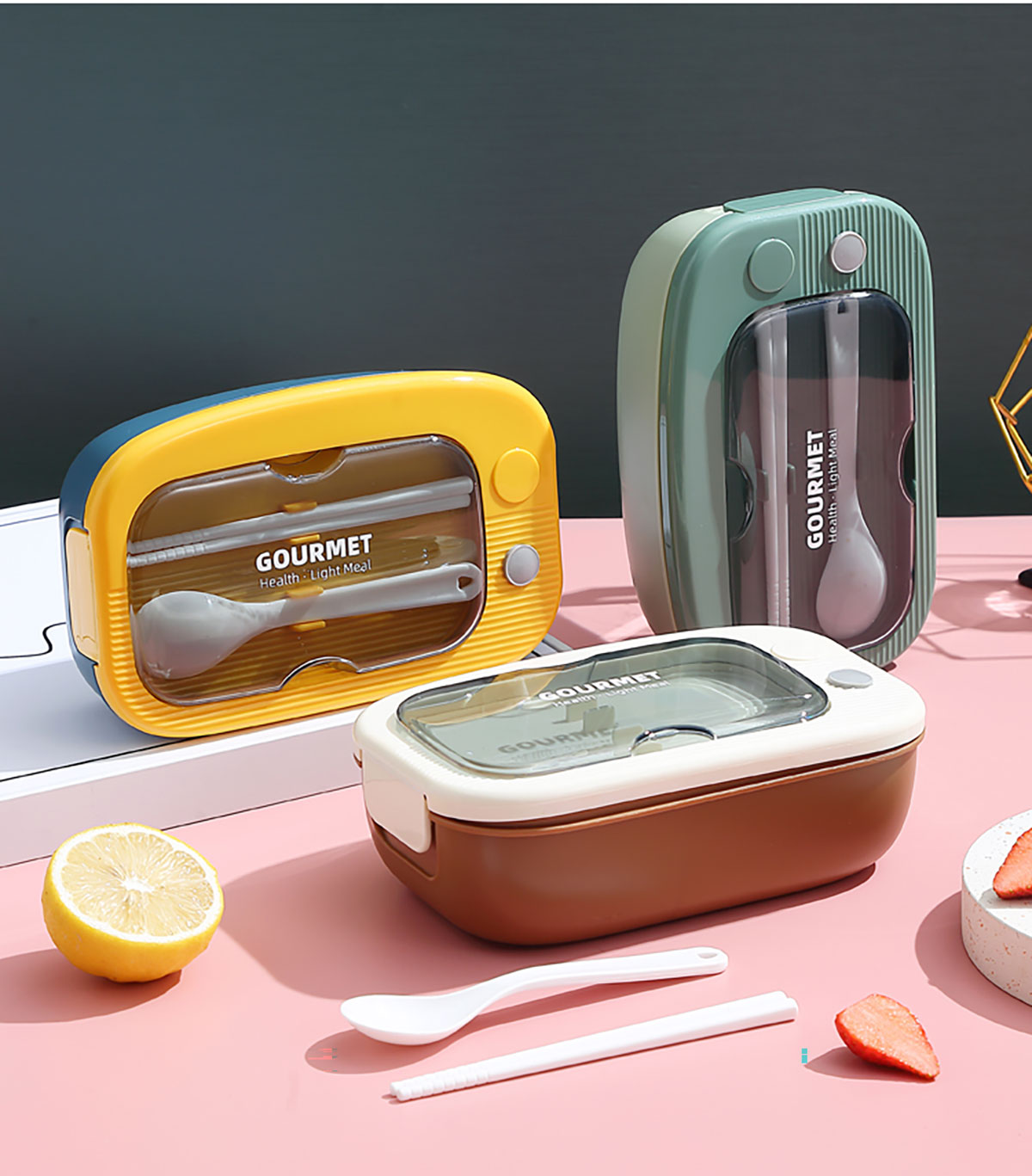 優(yōu)品塑料飯盒1100ml 配叉勺