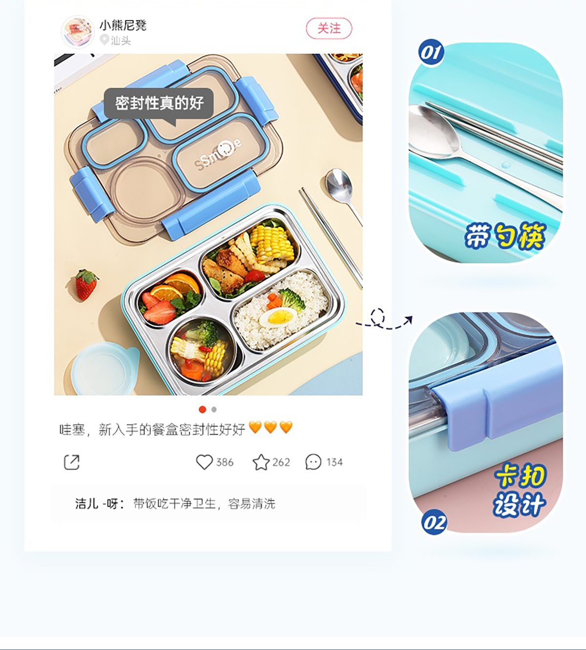 900ml獨(dú)立密封不銹鋼餐盒(4格+不銹鋼碗150ml+不銹鋼勺筷)