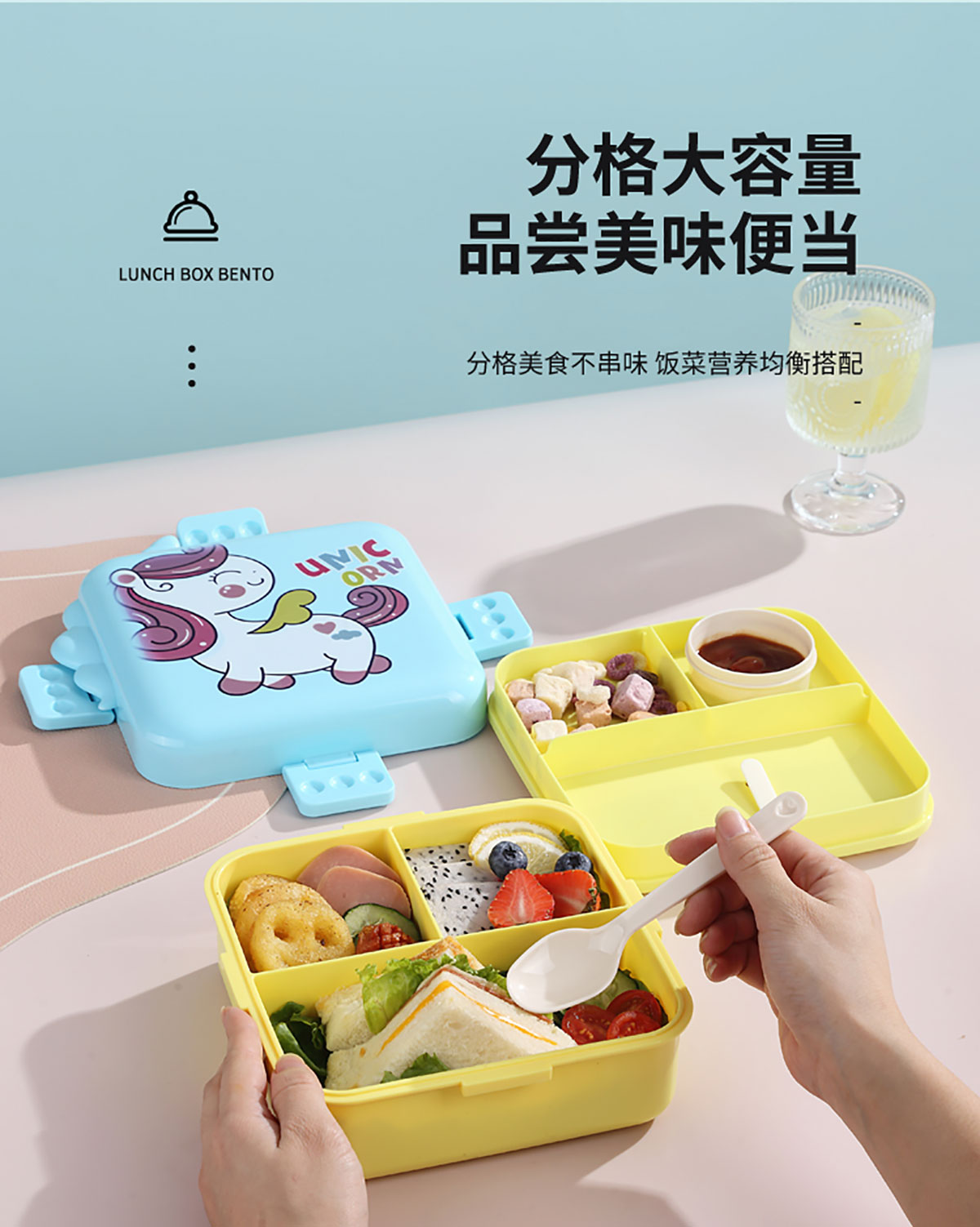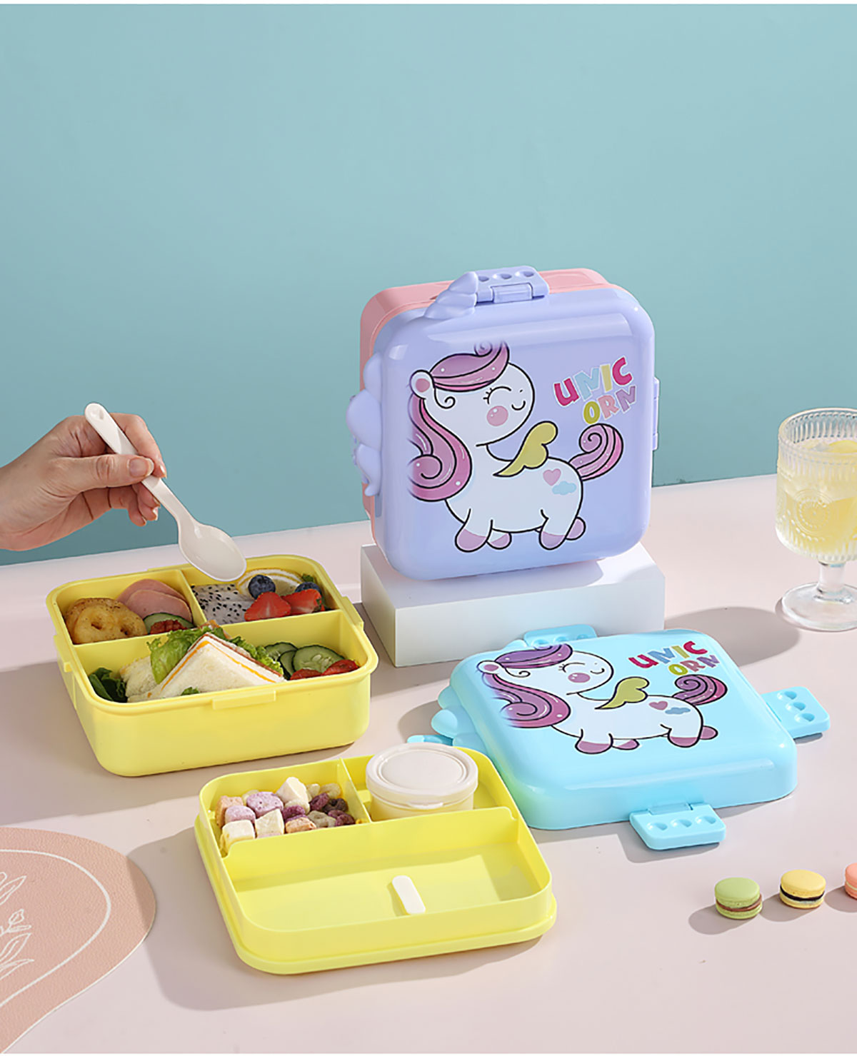 熊貓/大嘴鳥/獨角獸/美人魚正方形塑料餐盒1590ml+70ml