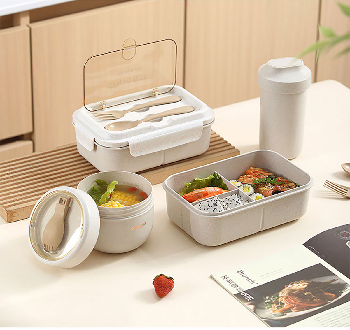 簡(jiǎn)麥便當(dāng)盒飯盒/套裝(飯盒+水杯/飯盒+水杯+灰色餐袋/飯盒+燕麥杯+灰色餐袋)