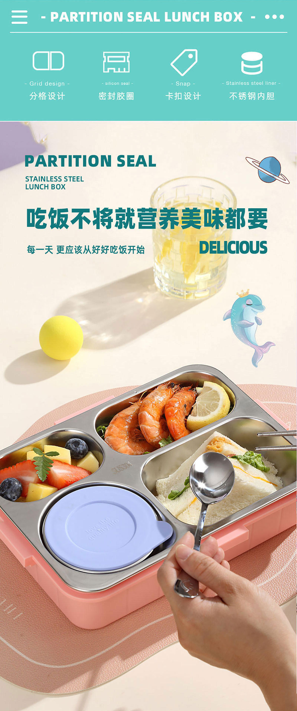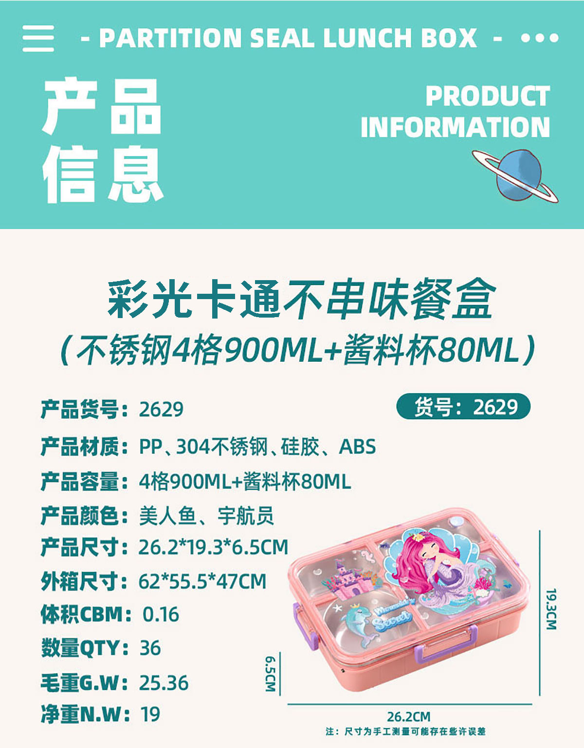 Size: AQX-2629:262*193*65mm/不銹鋼4格900ml+醬料杯80ml
