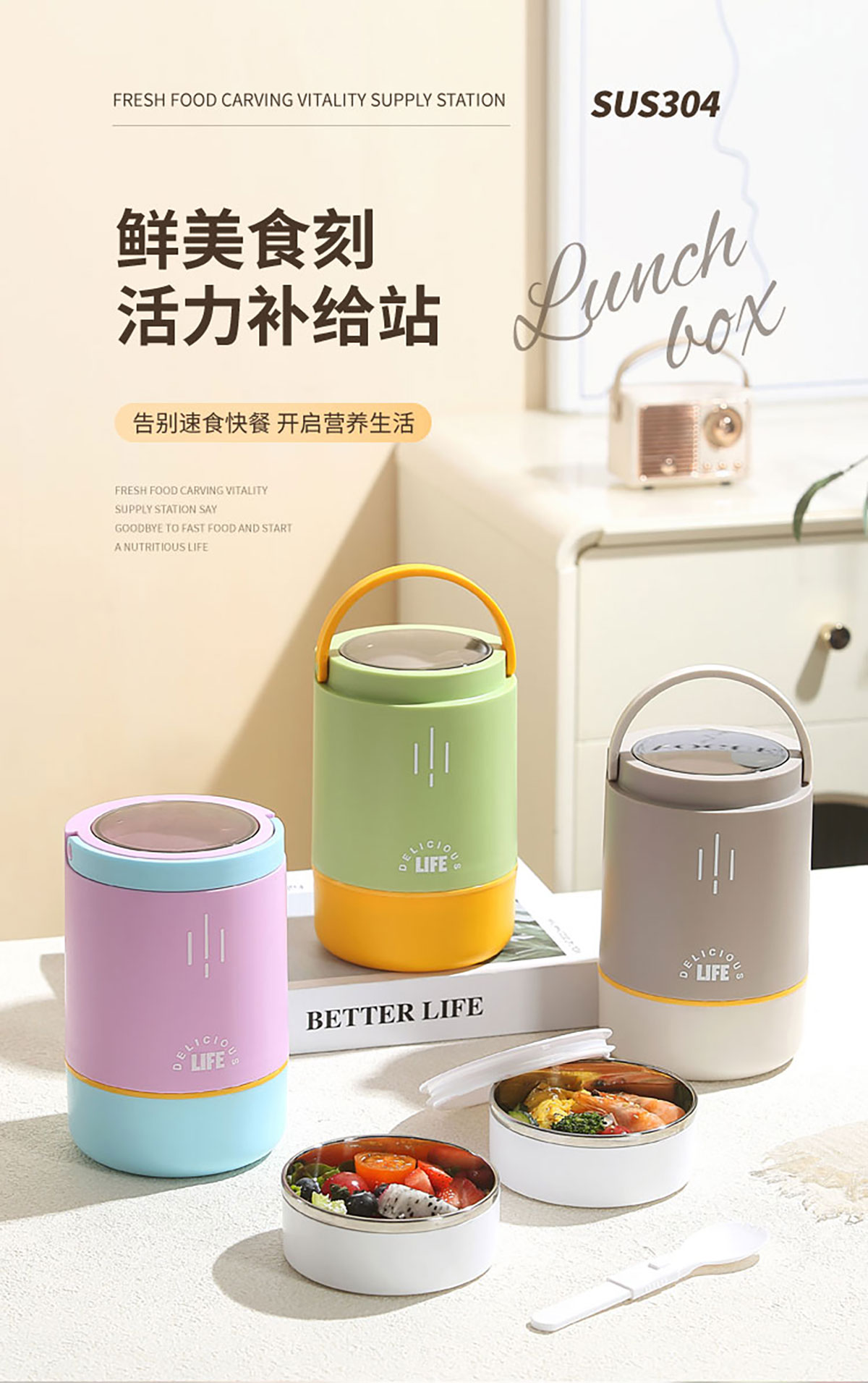 迷你多層便當(dāng)盒250+250+400=900ml