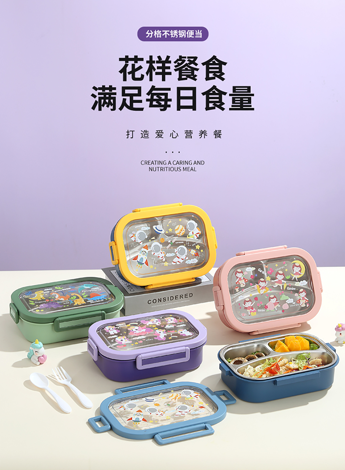 卡通不銹鋼飯盒850ml