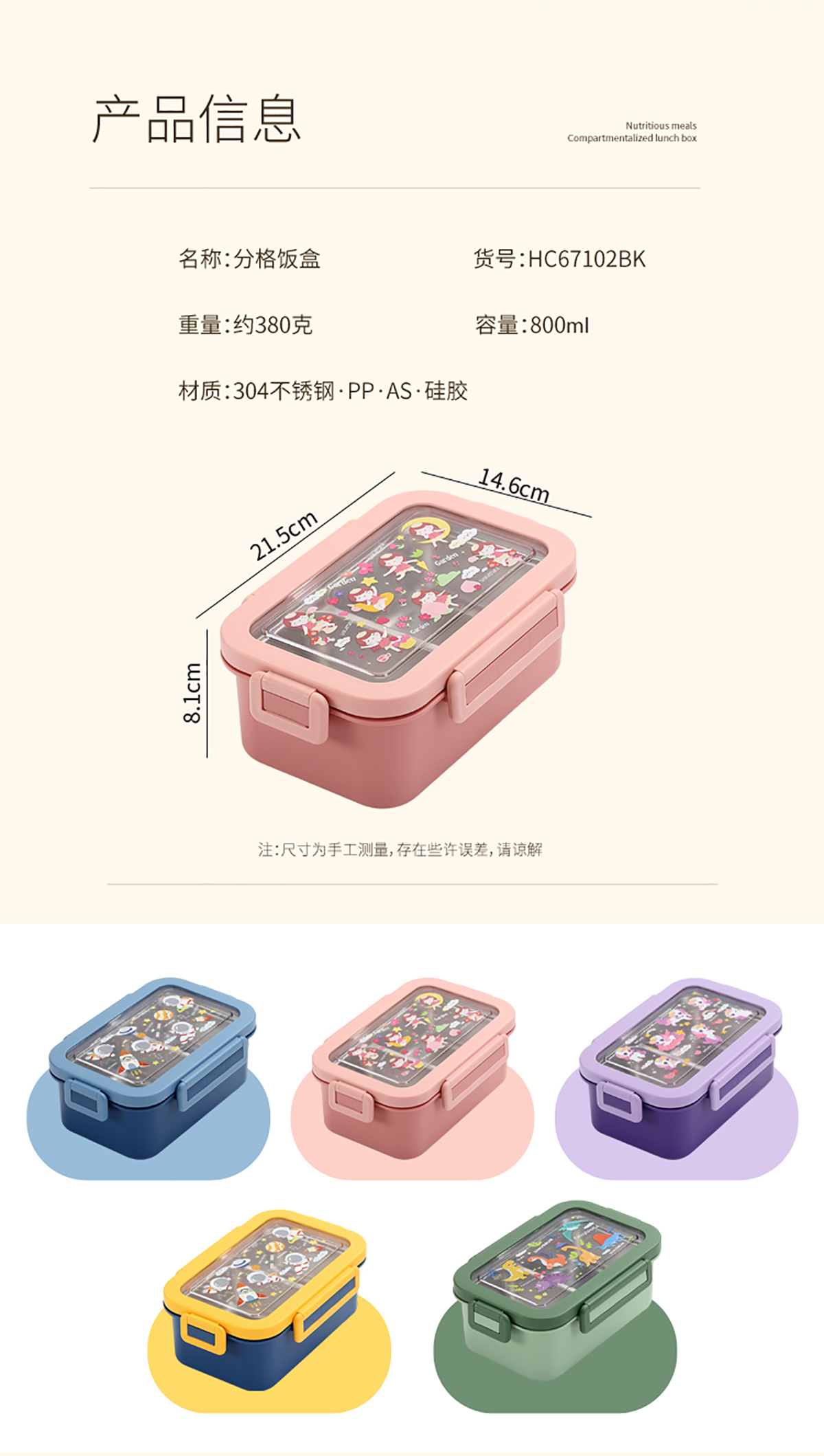卡通不銹鋼飯盒800ml