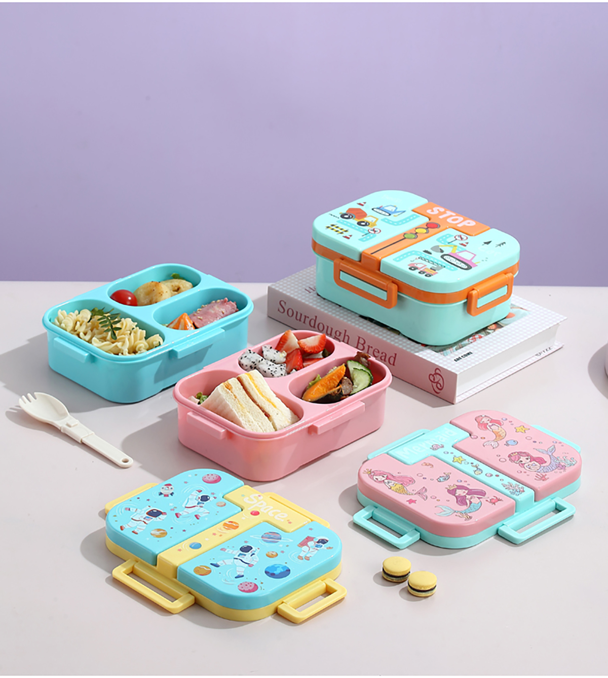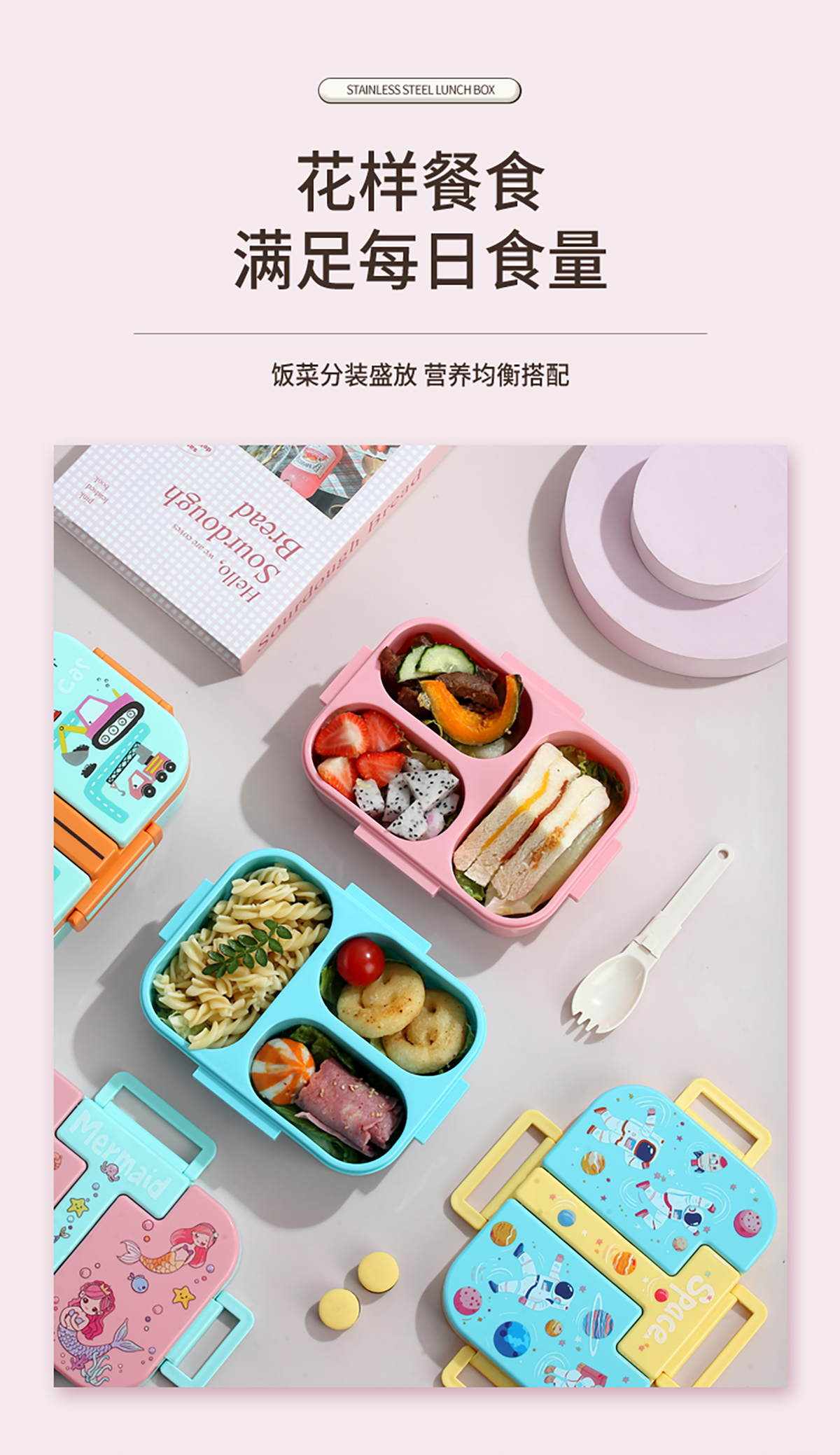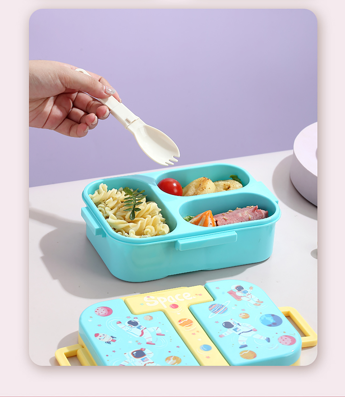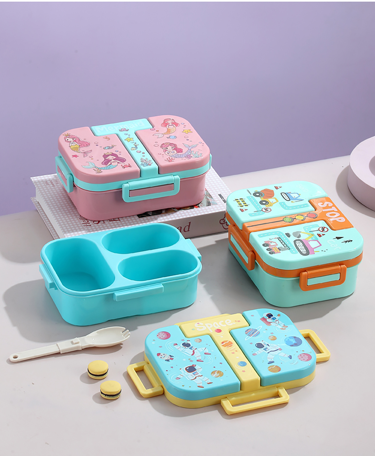 獨立密封童趣塑料餐盒2格900ml/3格850ml  (配PP折疊湯勺)