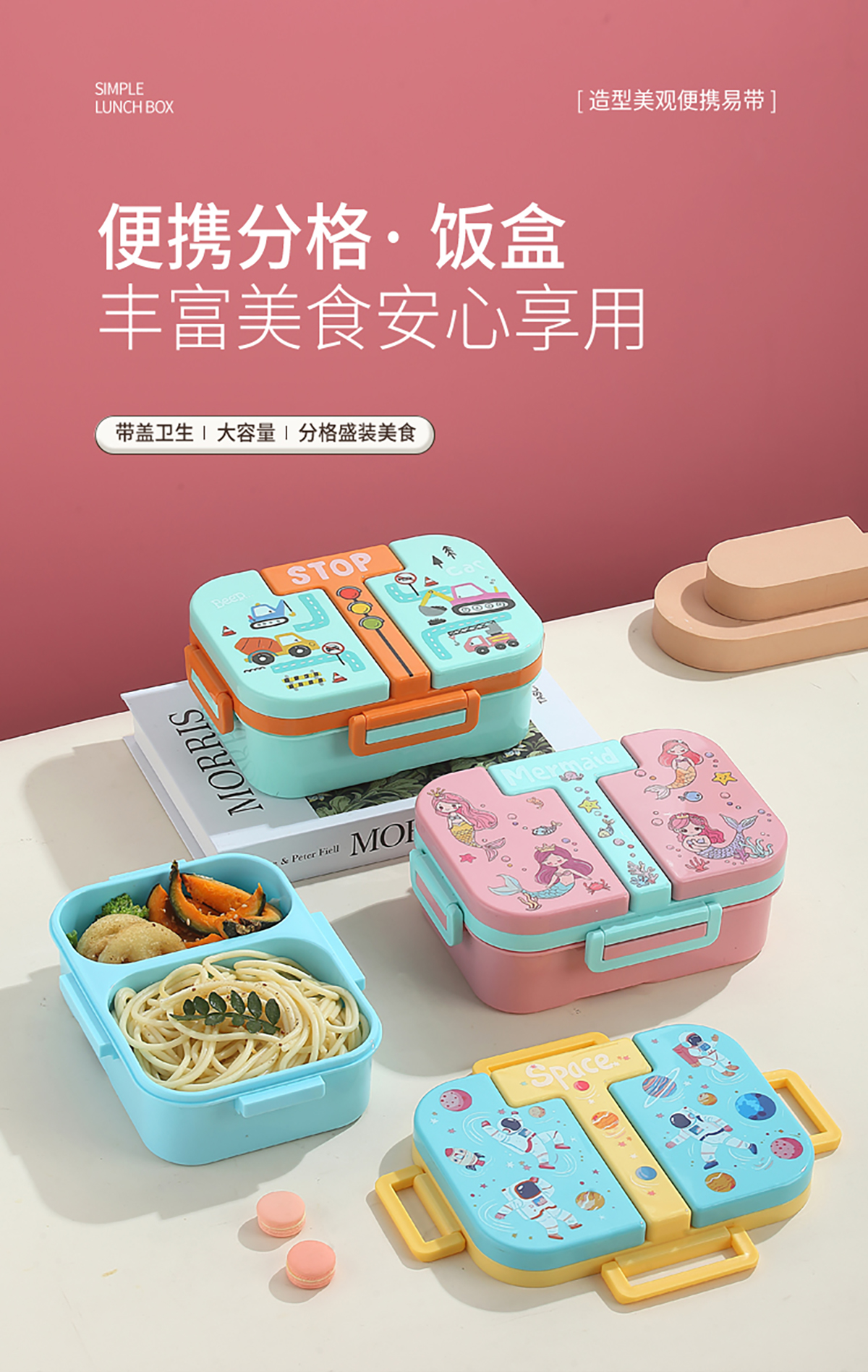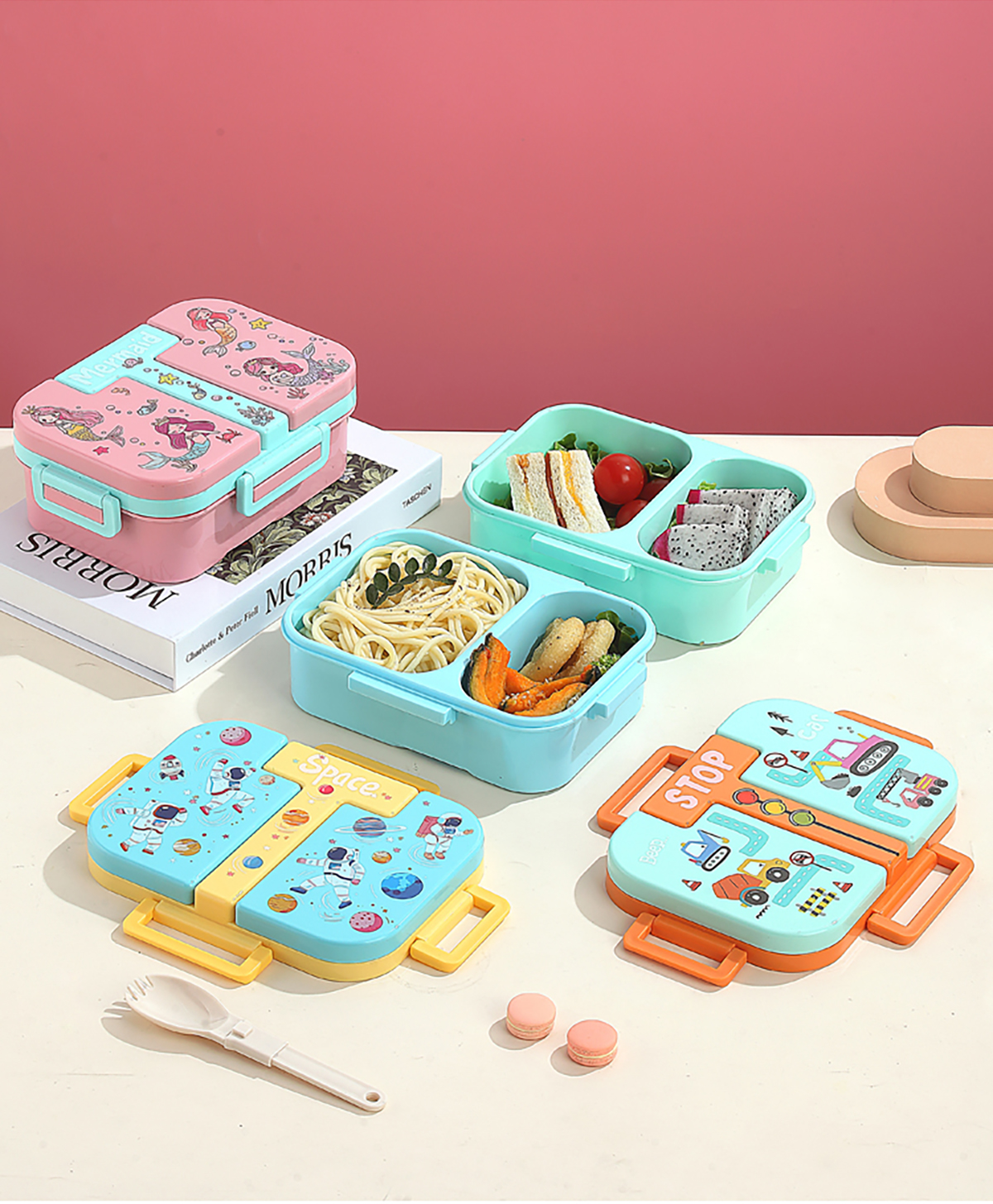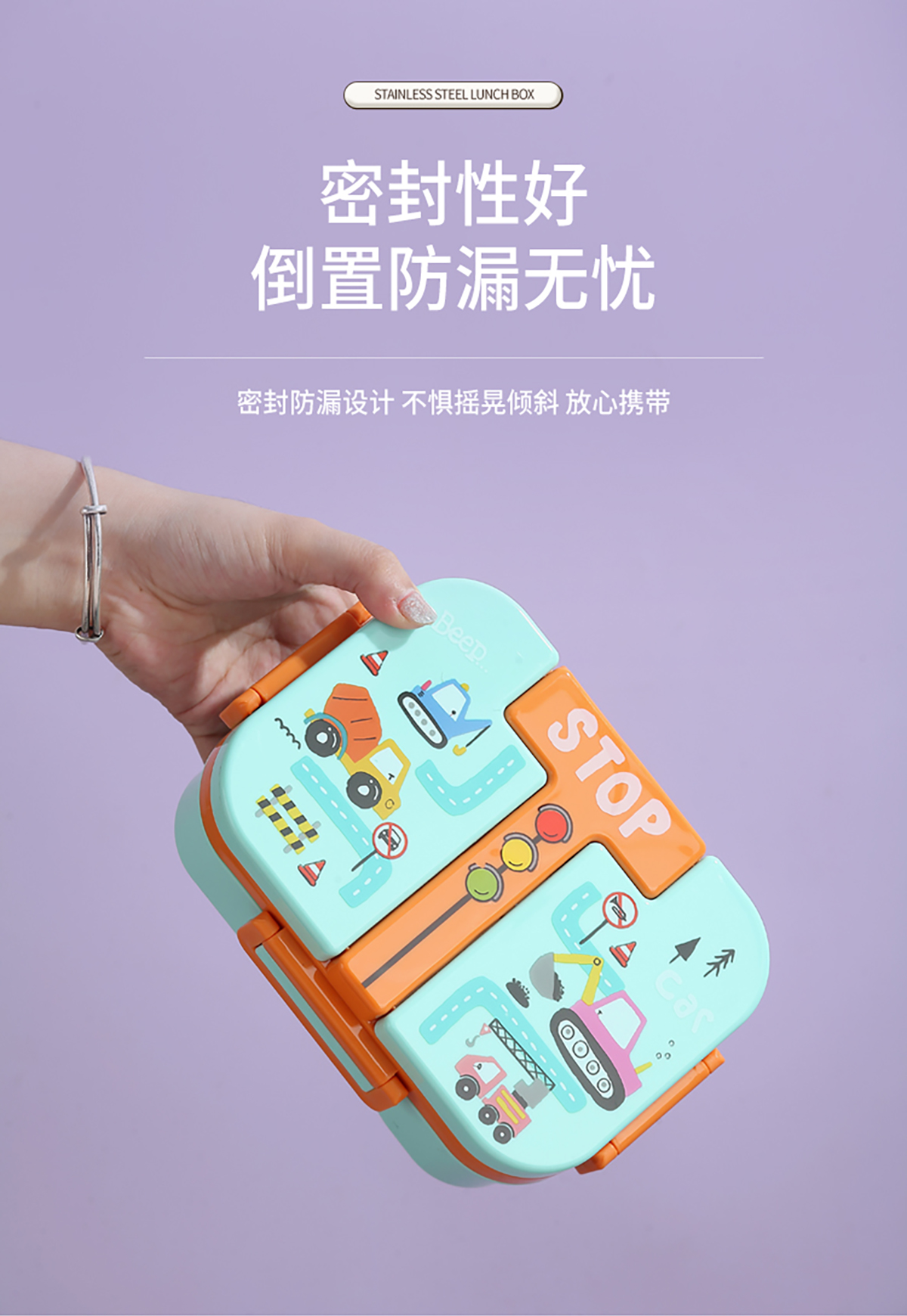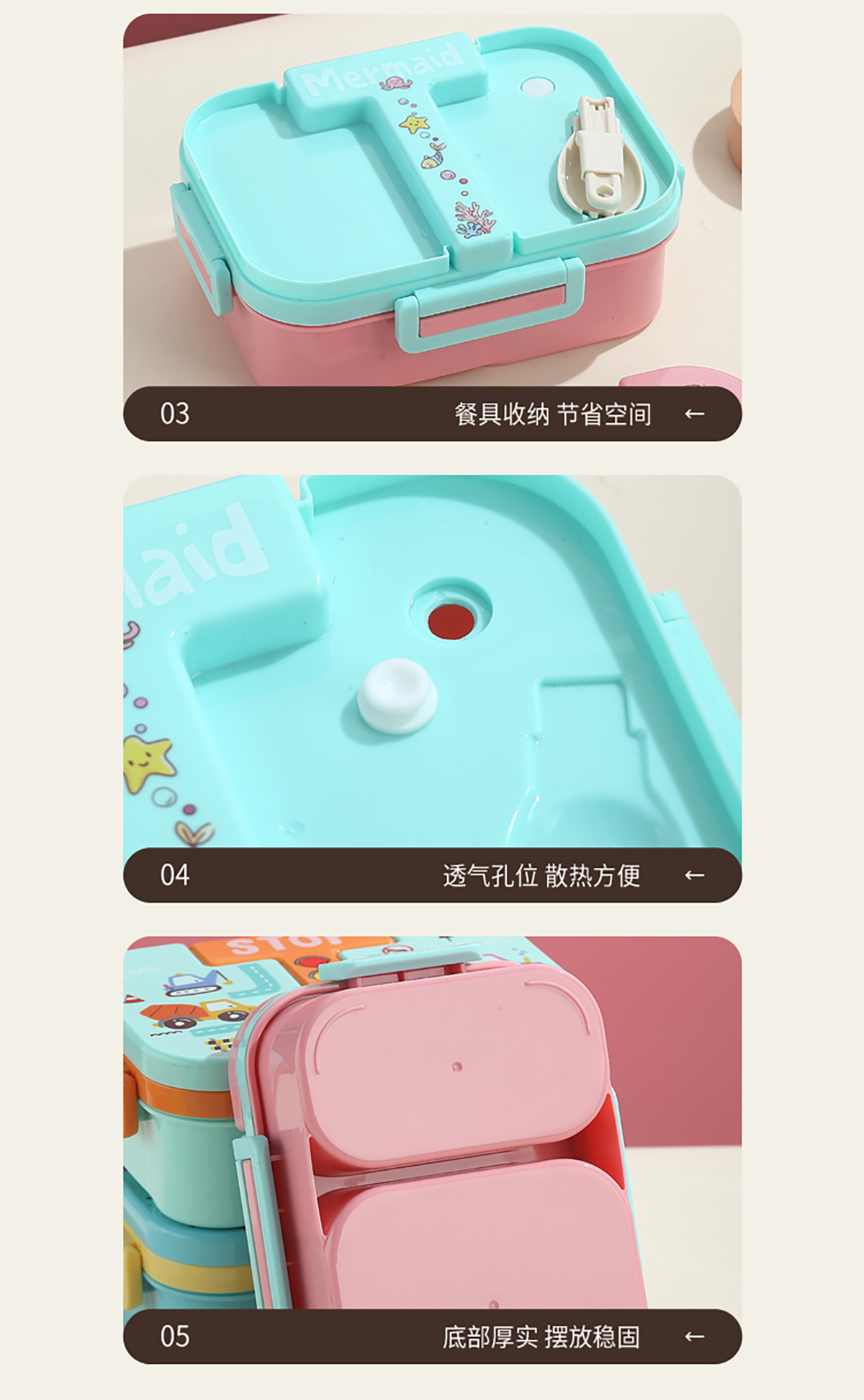 獨立密封童趣塑料餐盒2格900ml/3格850ml  (配PP折疊湯勺)