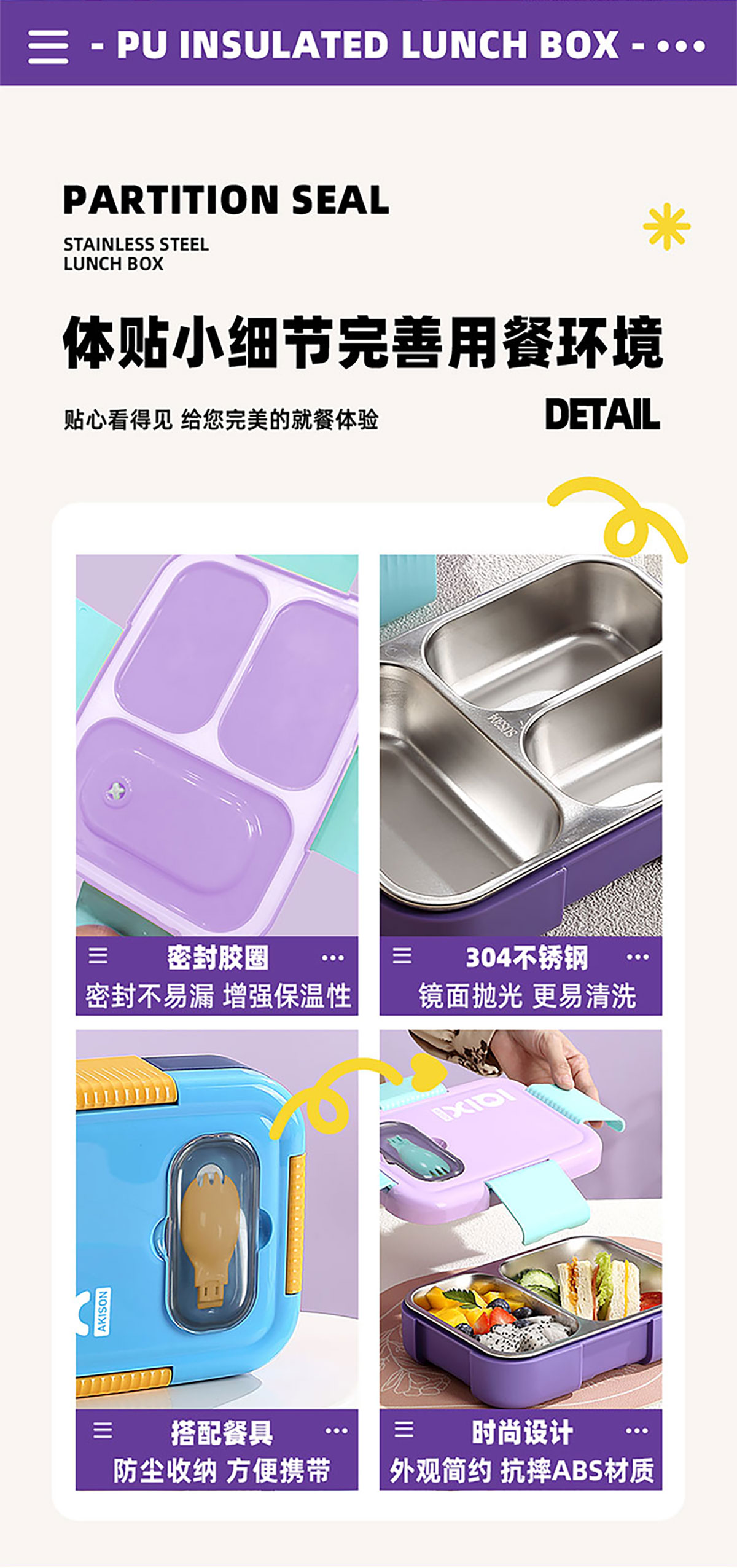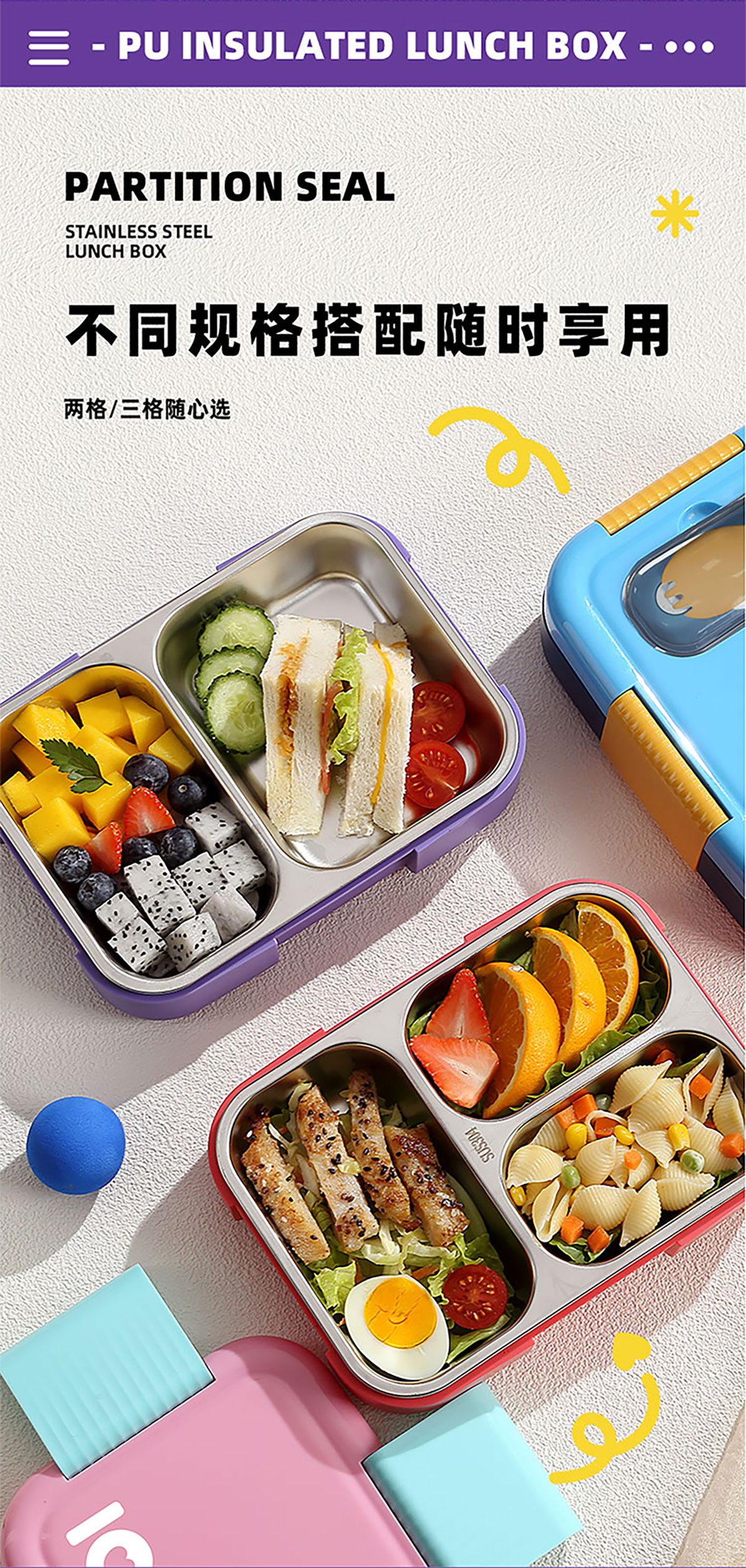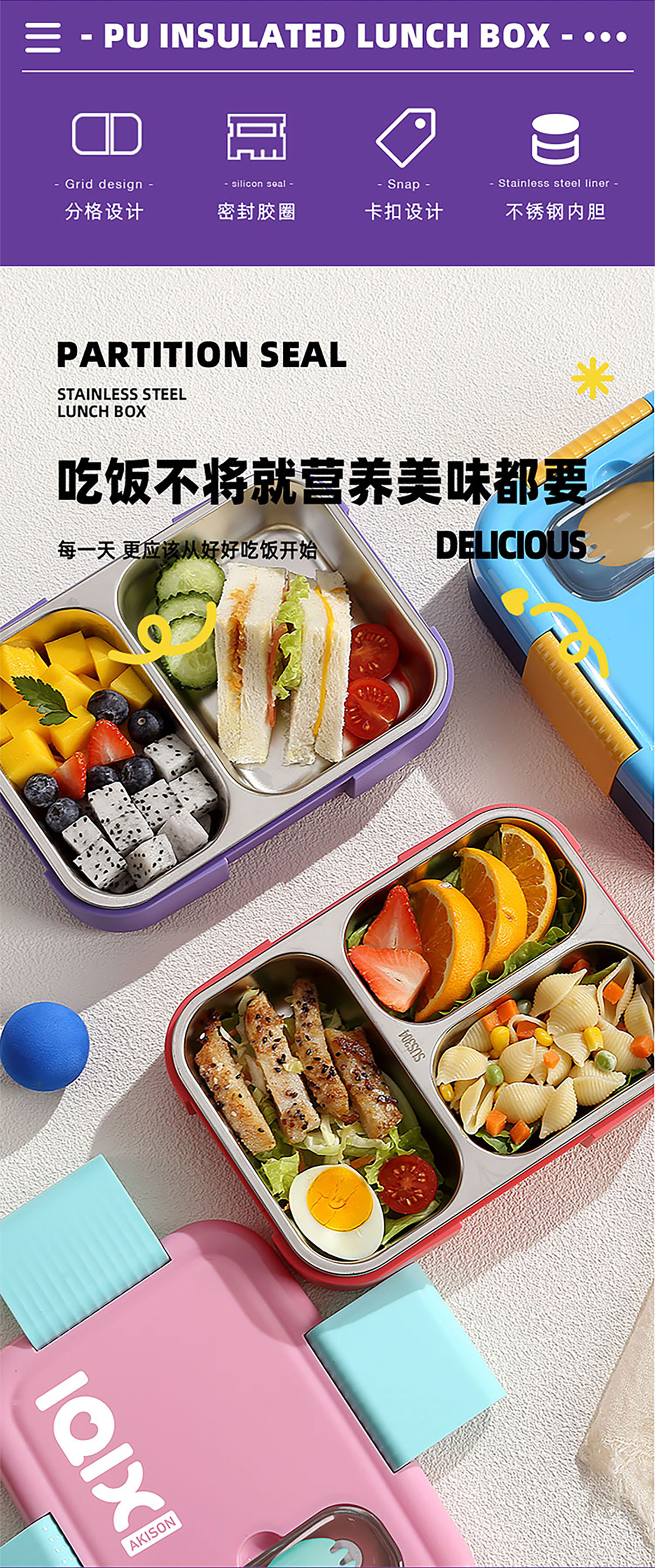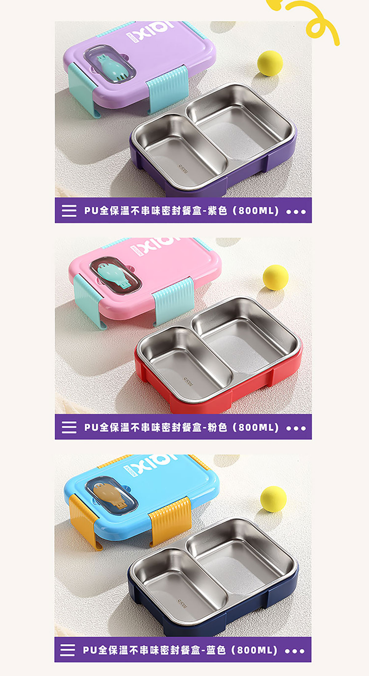 PU全保溫不串味密封餐盒(不銹鋼3格/2格+PP折疊勺)