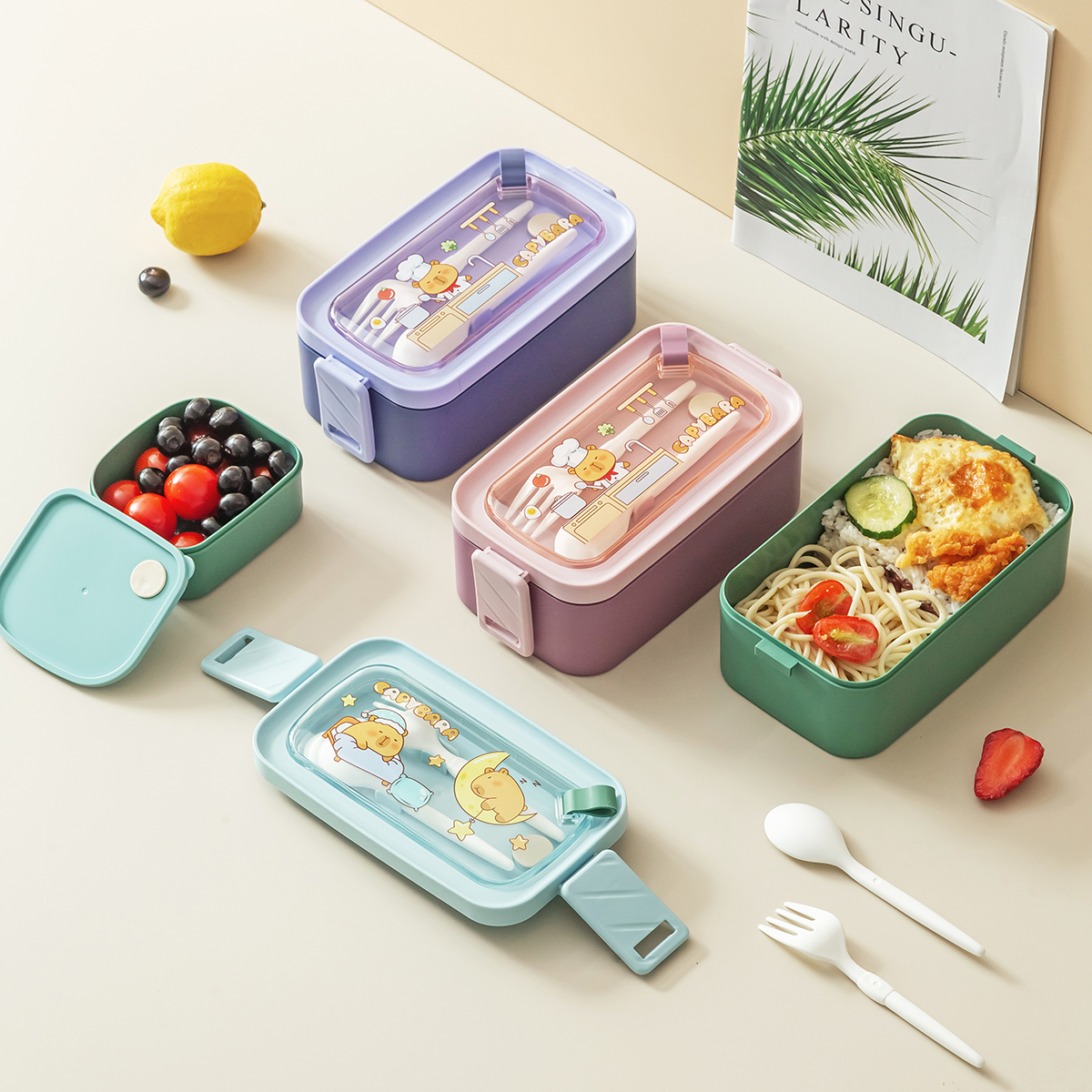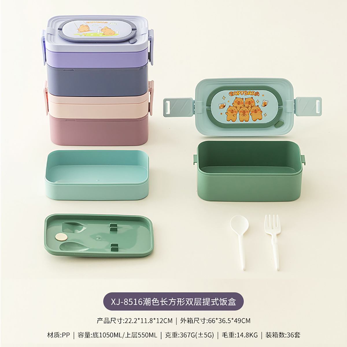 潮色長方形單層/雙層提式飯盒