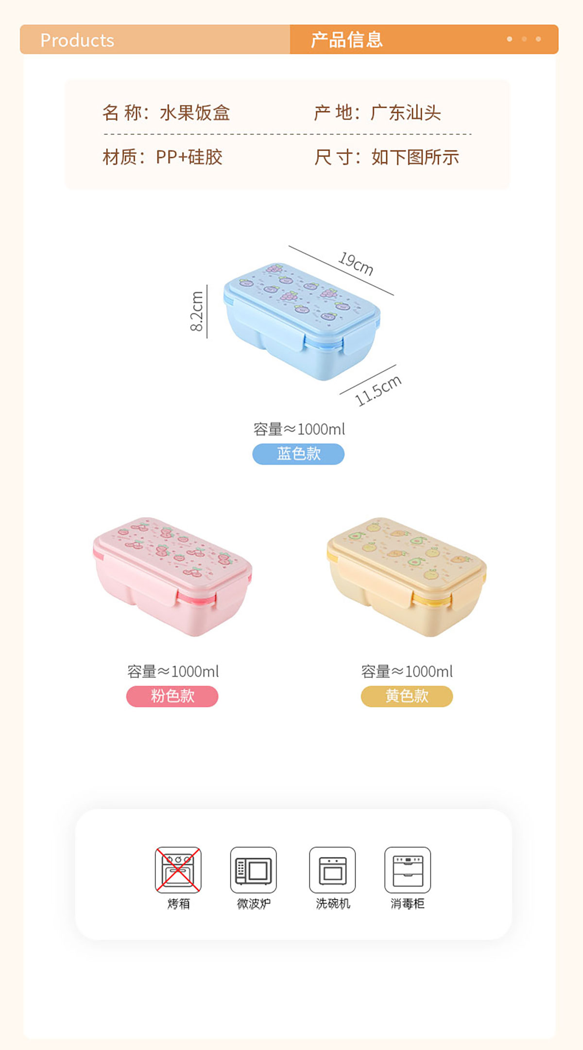 水果蜜語輕食便當(dāng)盒(配叉+勺)850ml