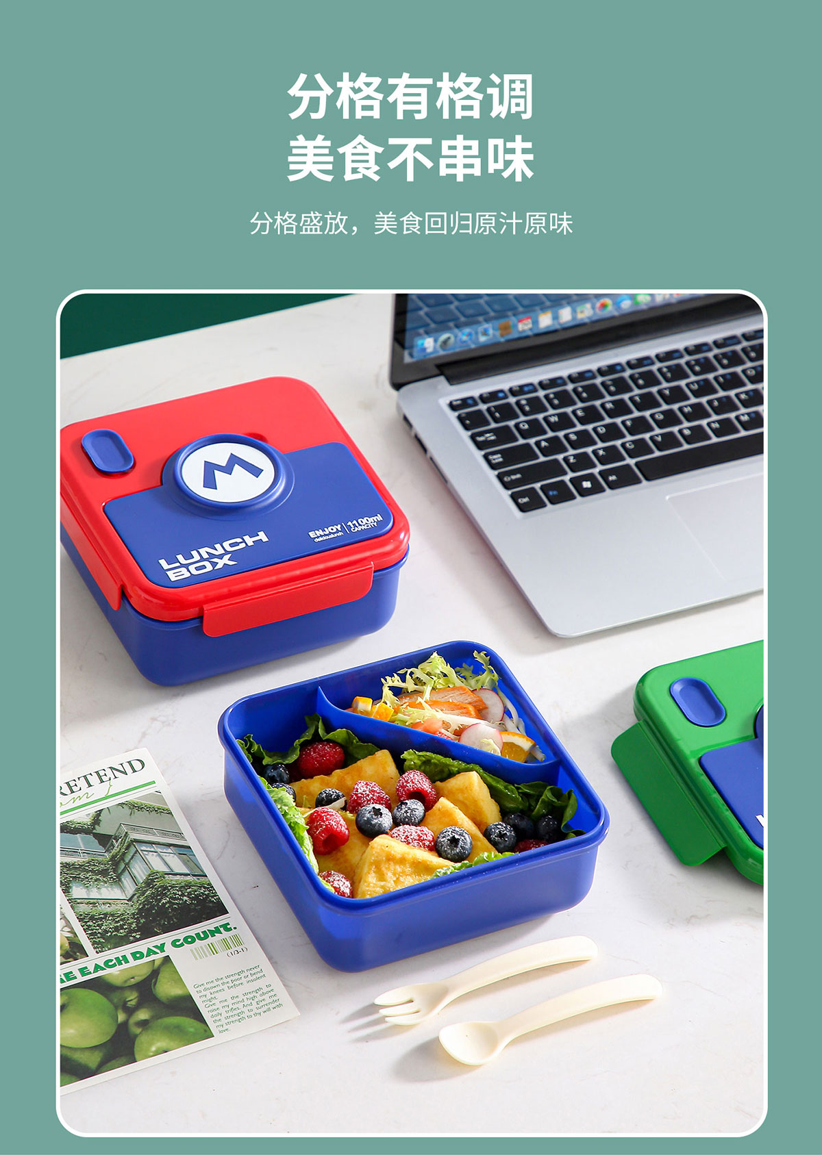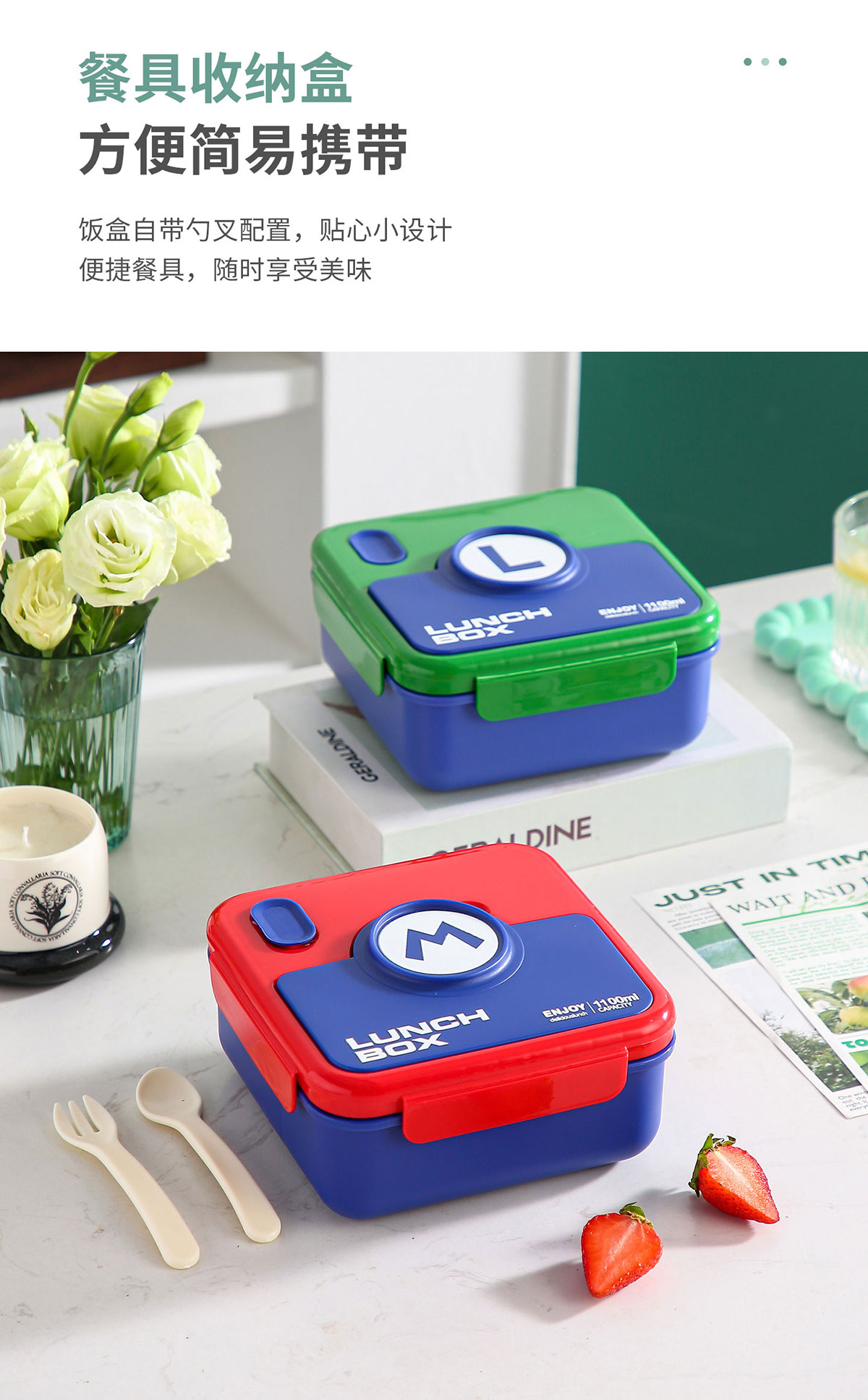 童趣塑料/304不銹鋼飯盒飯盒(配叉+勺)