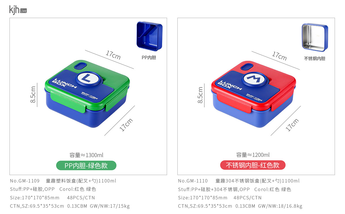 Size: GM-1109(塑料款):170*170*85mm/1100ml