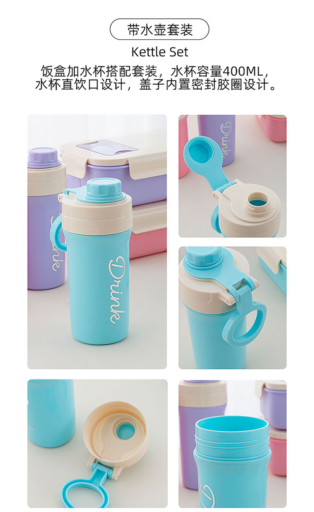 清新簡(jiǎn)約飯盒水壺套裝1100ml+400ml