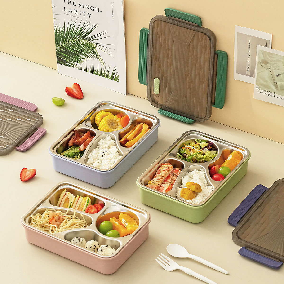 小簡(jiǎn)四格不銹鋼飯盒