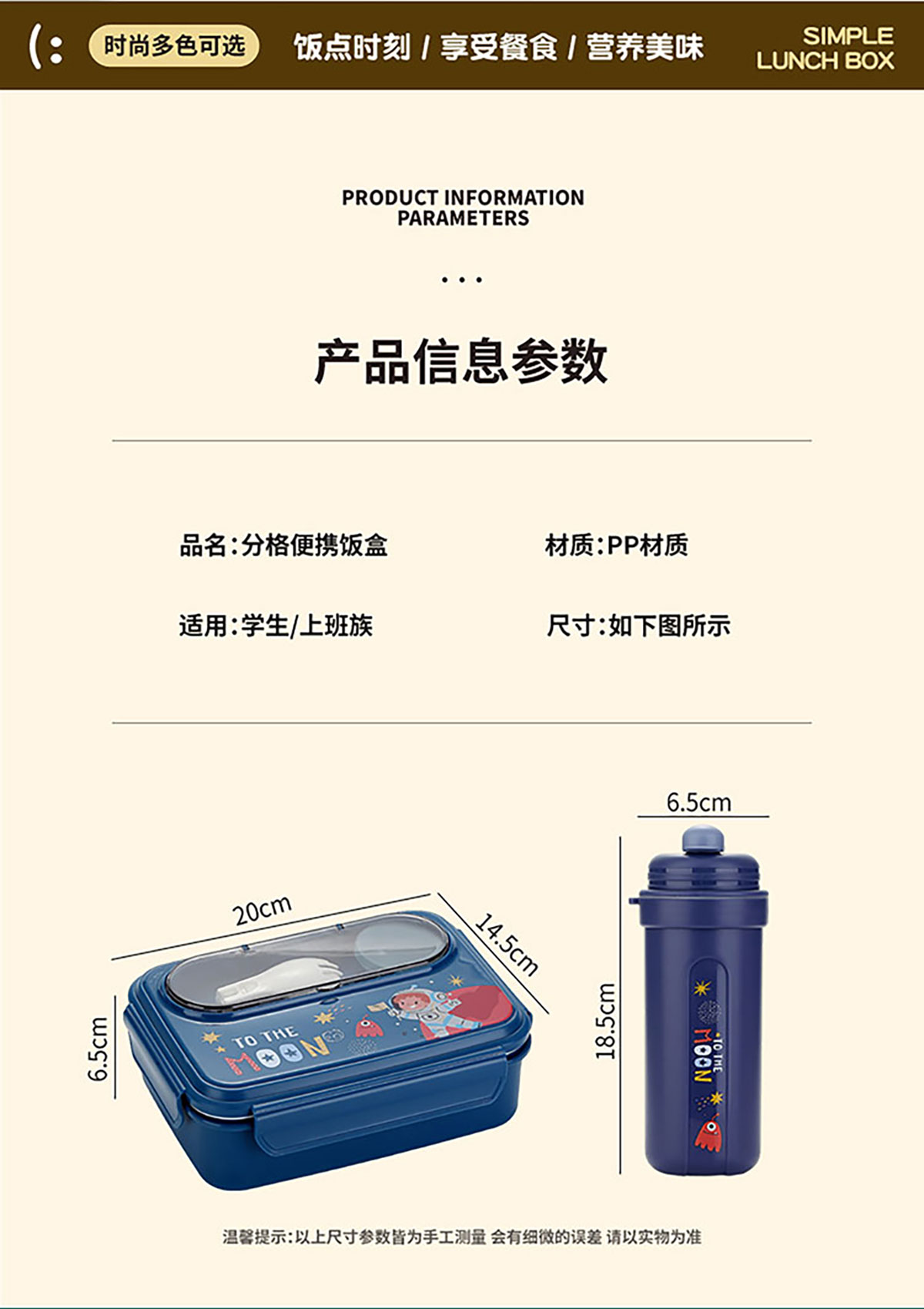 Size: 飯盒:200*145*65mm 水壺:65*185mm