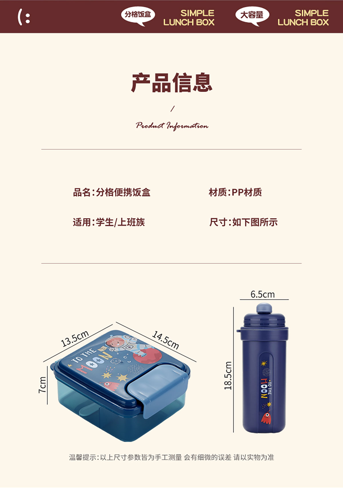Size: 飯盒:135*145*70mm 水壺:65*185mm