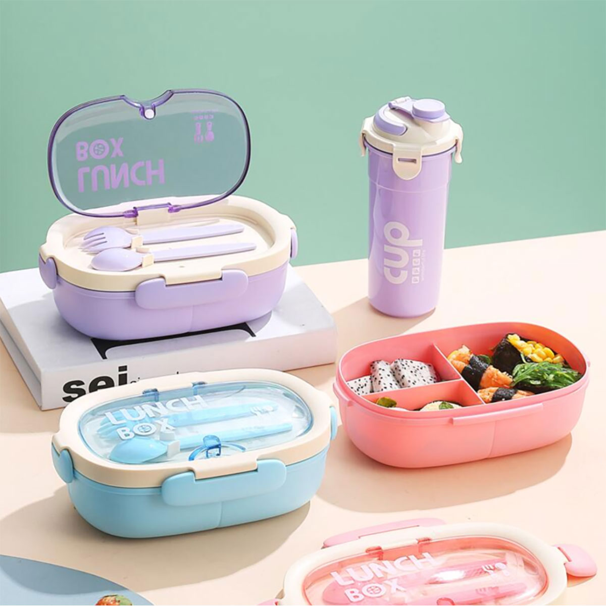 旦形套裝飯盒(飯盒850ML+水杯480ML)