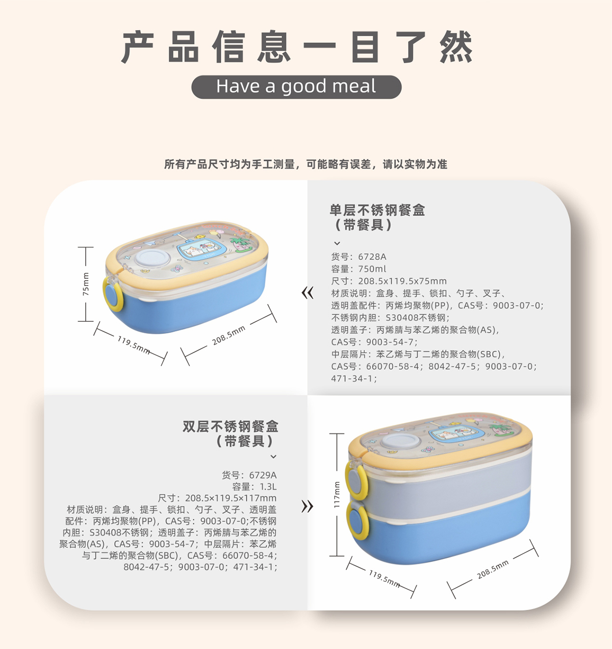 Size: HM-6728A(單層):209*120*75mm