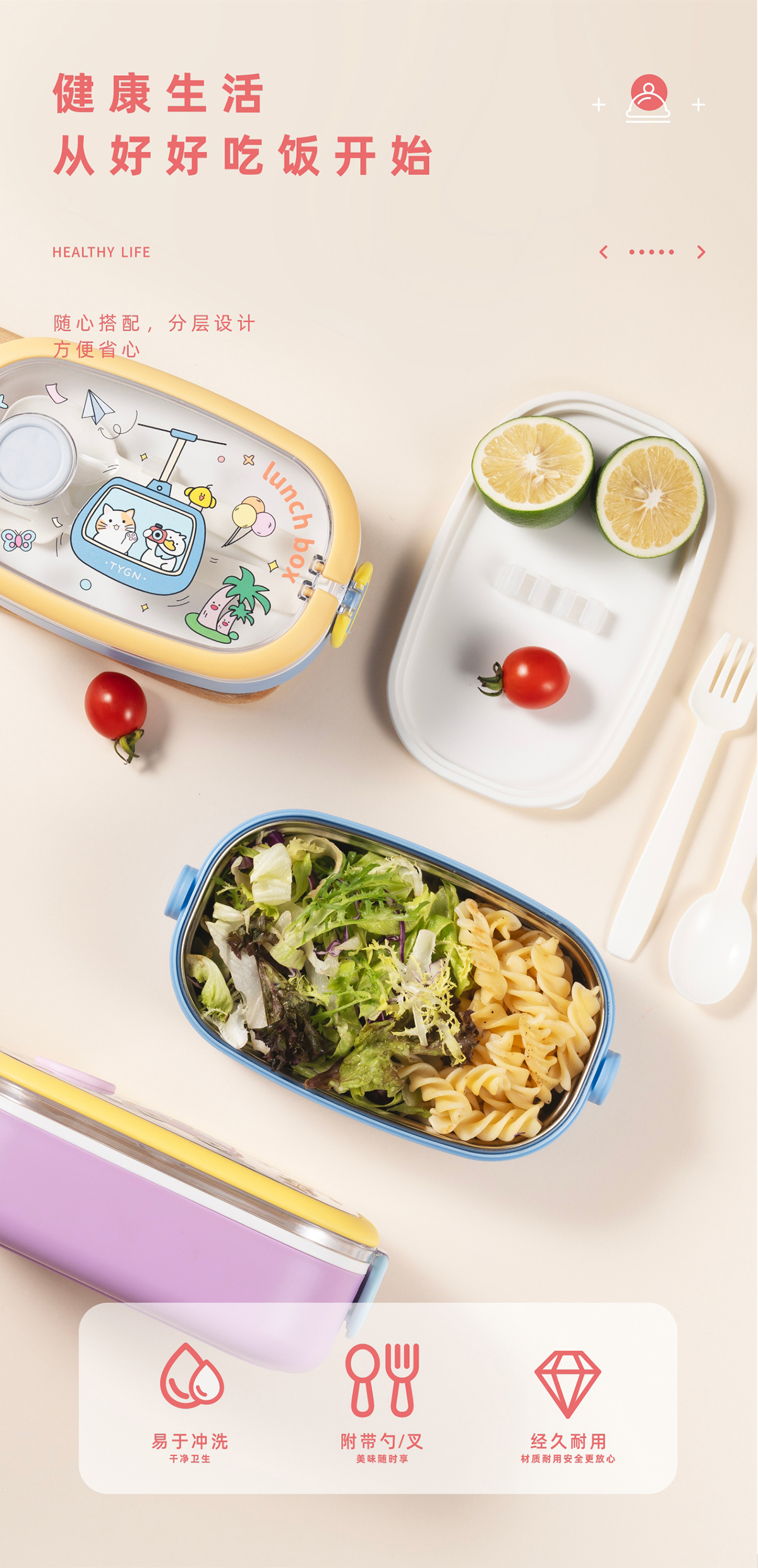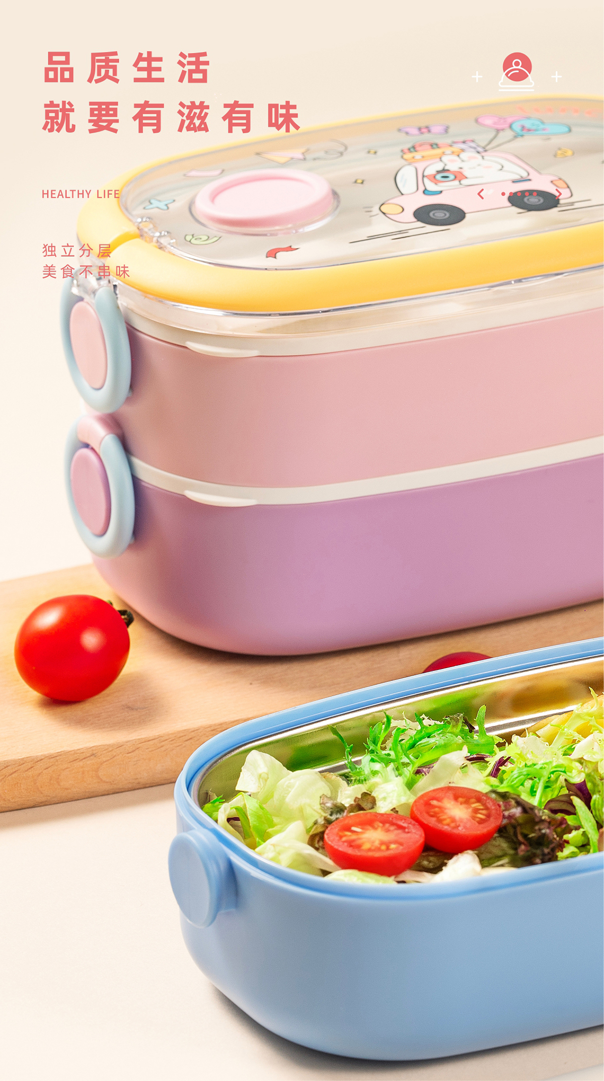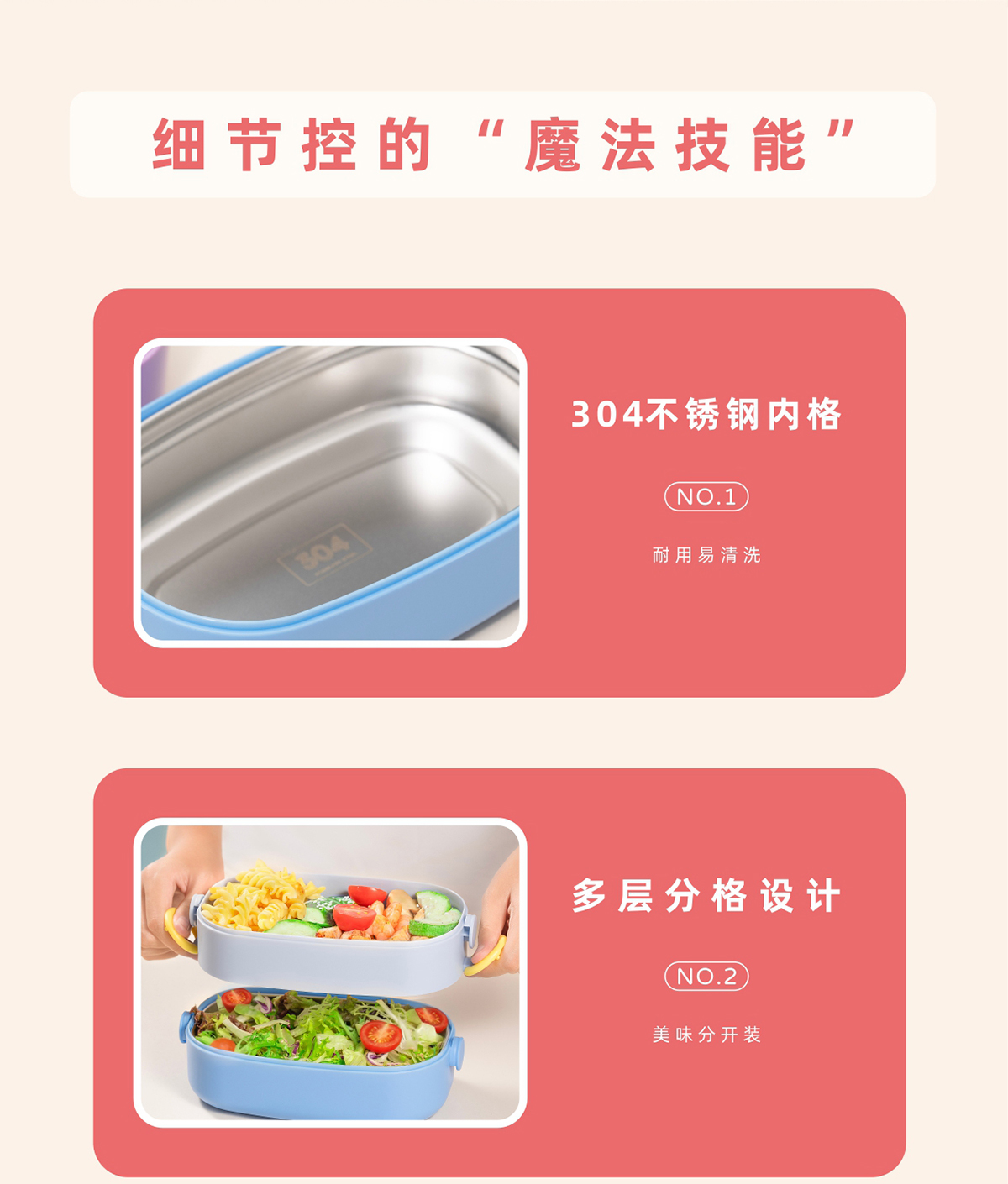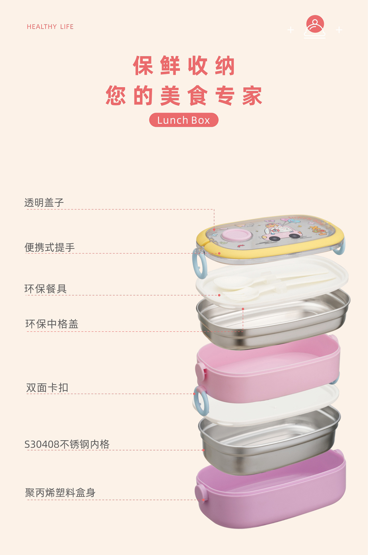 單層/雙層長方形不銹鋼飯盒