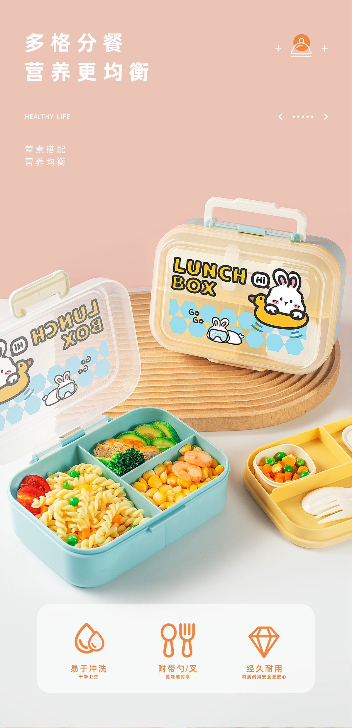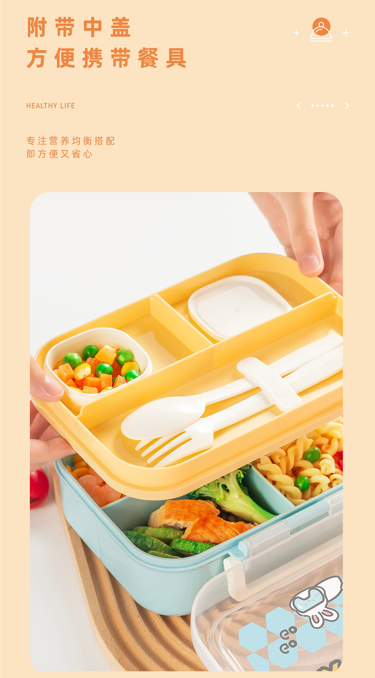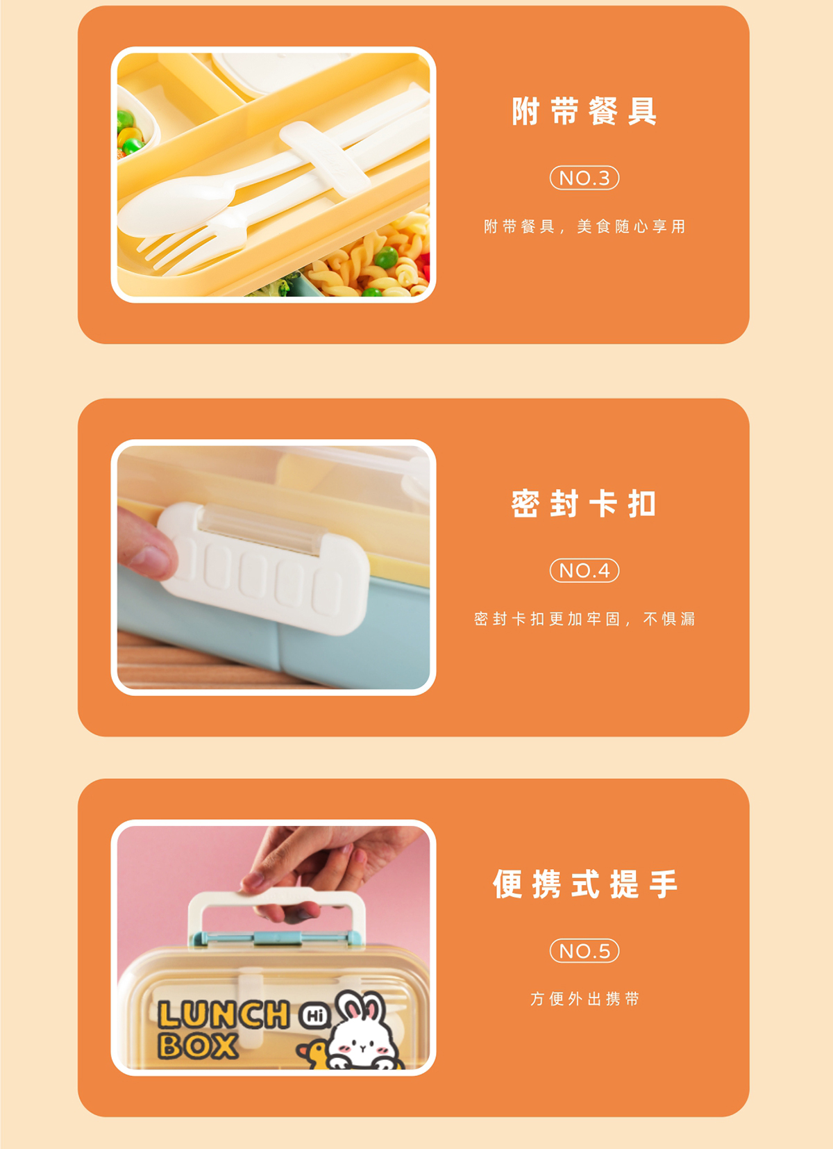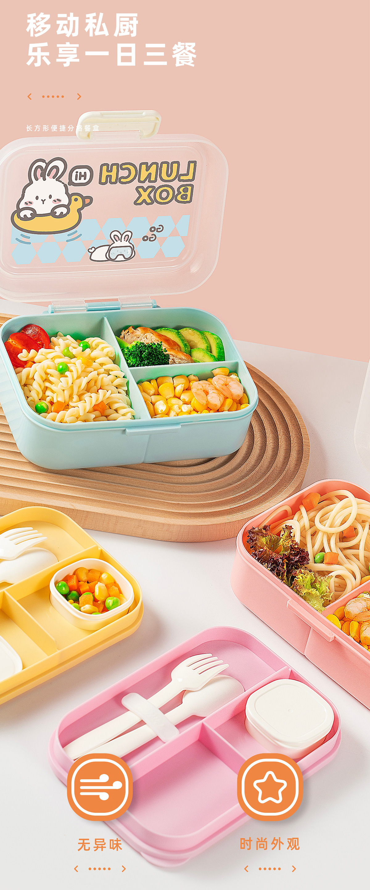 長方形便攜分格餐盒